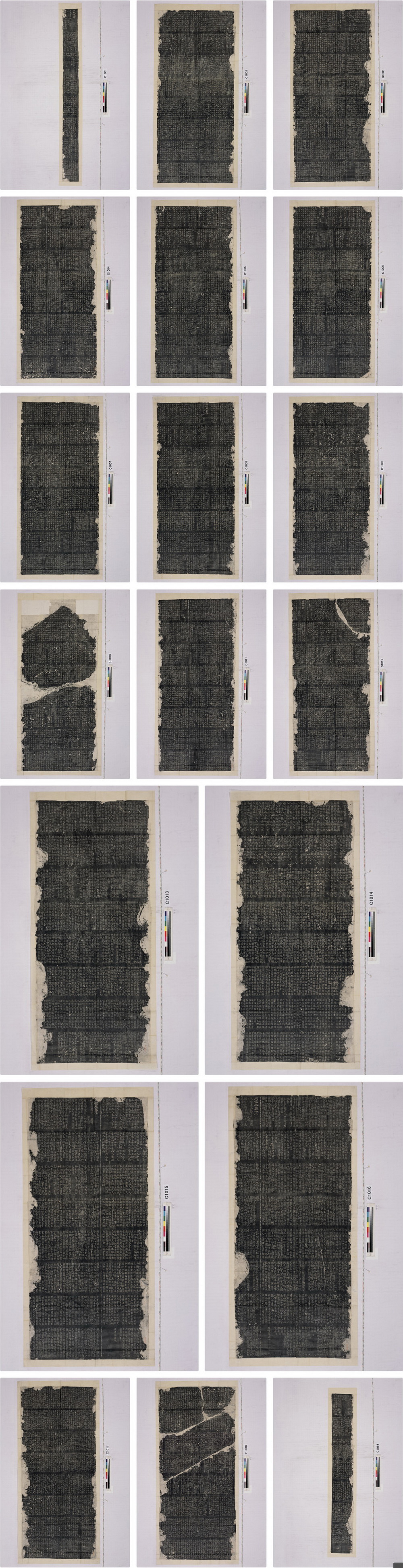 形制尺寸:拓片尺高200厘米左右不等,每碑上下分为八段,每段中每行刻十字