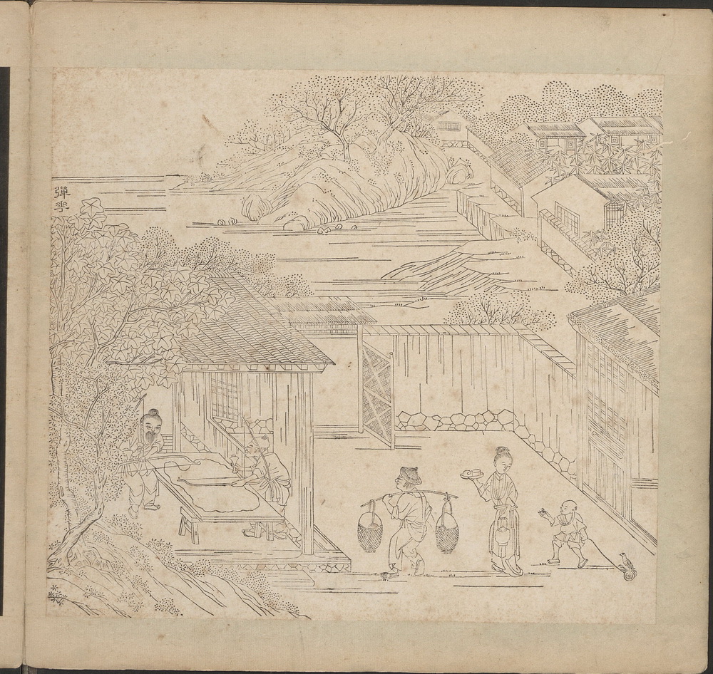 计有布种、灌溉、耕畦、摘尖、采棉、炼晒、收贩、轧核、弹花、拘节、纺线、挽经、布浆、上机、织布、练染,每图都配有文字说明和七言诗一首,似连环画。