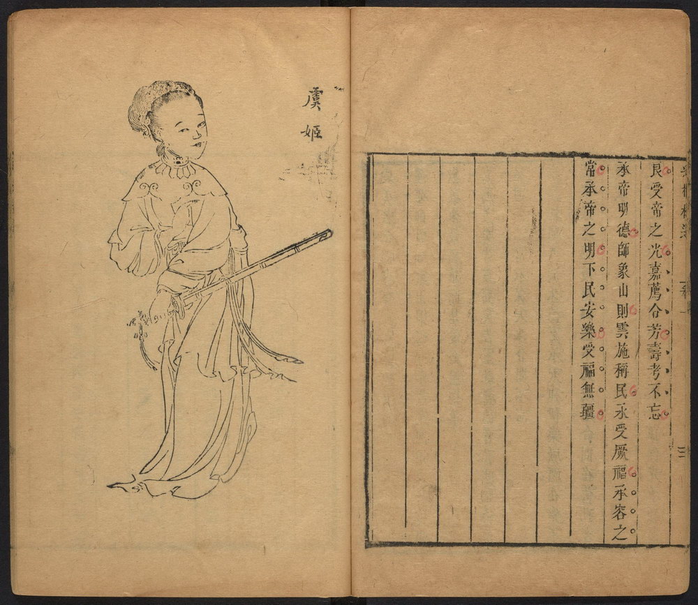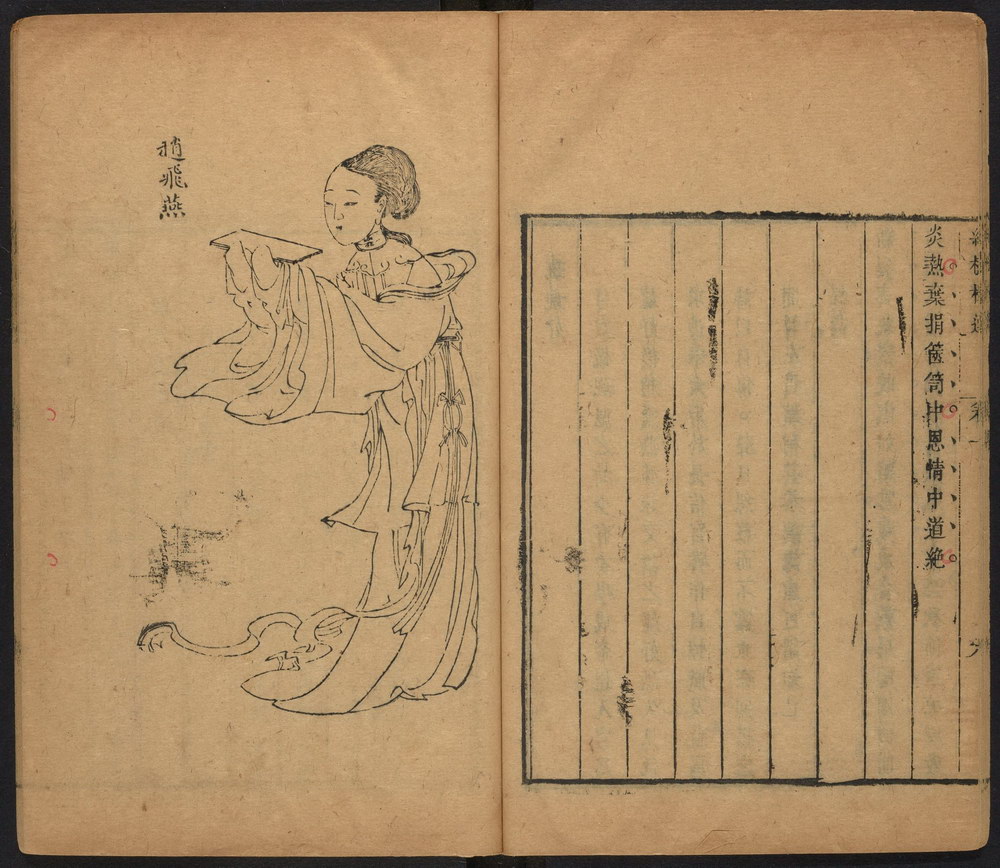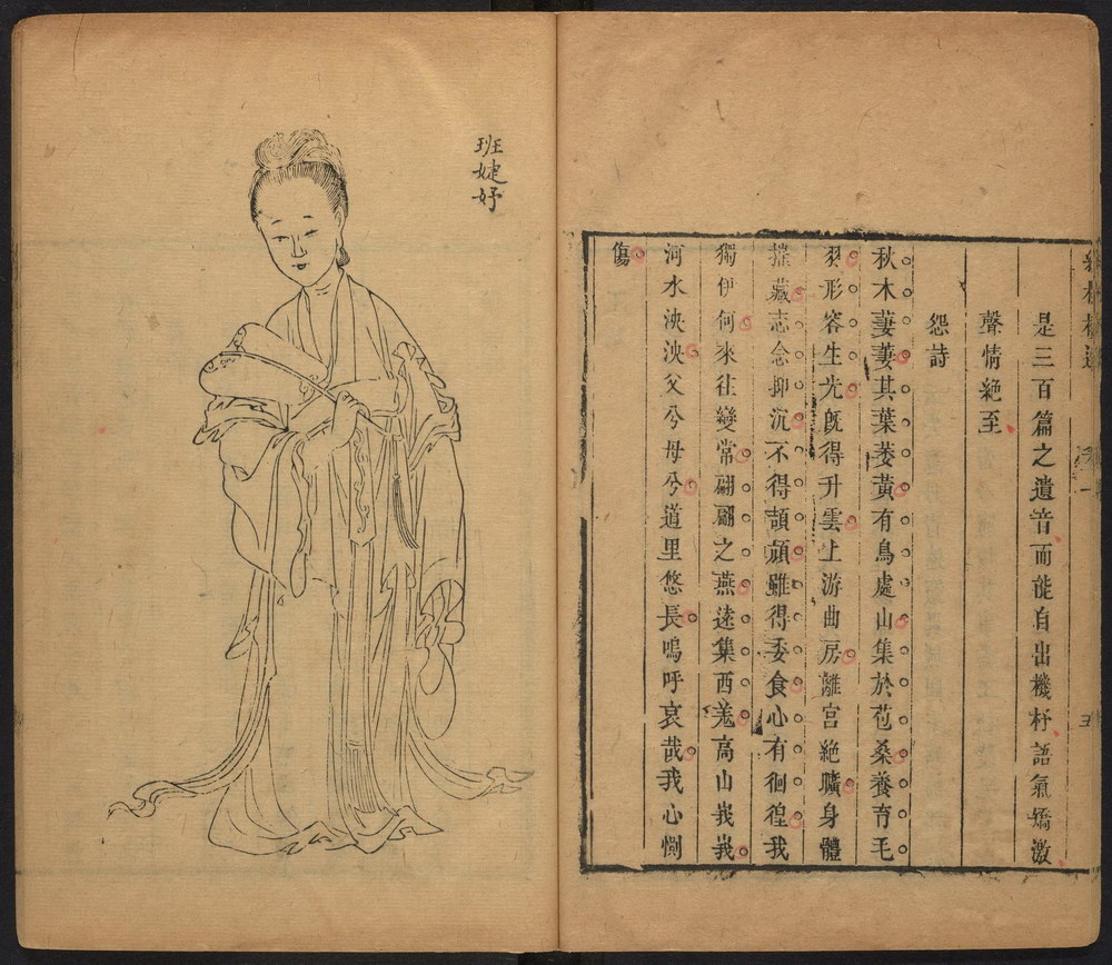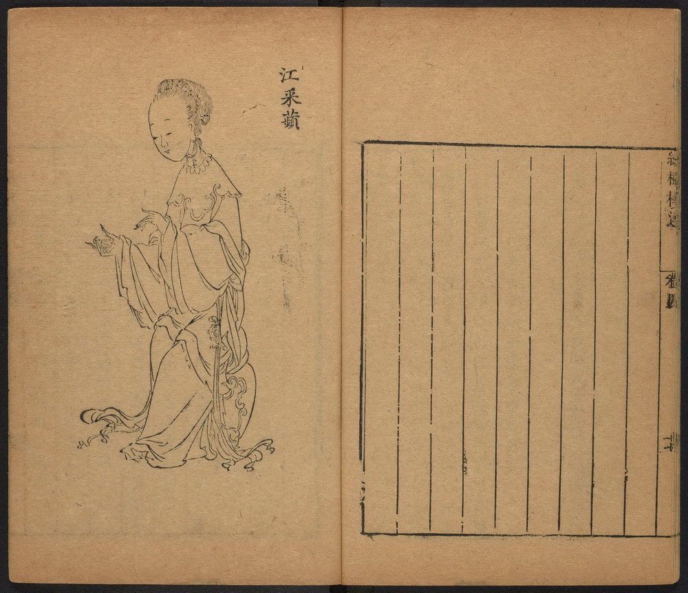 《历朝名媛诗词》为清代陆昶评选。全书共十二卷,内收王嬙、蔡琰、鱼玄机、薛涛、李清照等汉至元间两百余位名媛的诗词,共六百九十八首,以诗存人。诗词前附名媛绣像(共约五十七幅),又叙小传。人物目录:唐山夫人、虞姬、王嬙、班婕妤、赵飞燕、罗敷、卓文君、蔡琰、谢道韫、桃叶、绿珠、谢芳姿、子夜、青溪小姑、刘令娴、沈满愿、王玉京、木兰、莫愁、乐昌公主、胡太后、崔孃、吴绛仙、丁六孃、苏蕙、上官昭容、七岁女子、开元宫人、天宝宫人、宋氏姐妹(宋若昭、宋若宪)、江采苹、杨贵妃、杜羔妻赵氏、光威裒、鱼元机、李弄玉、薛涛、关盼盼、崔莺莺、步非烟、章台柳、红绡、花蘂夫人、黄崇嘏、汴梁宮人、蒨桃、朱淑真、黄孃、谢金莲、辽后、管夫人、阿盖主、孙蕙兰、李清照、孙夫人、王清惠、琴操。