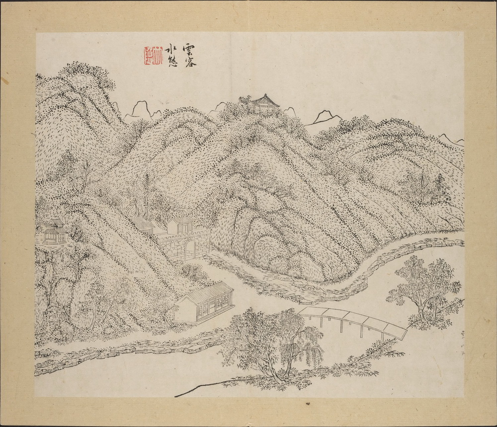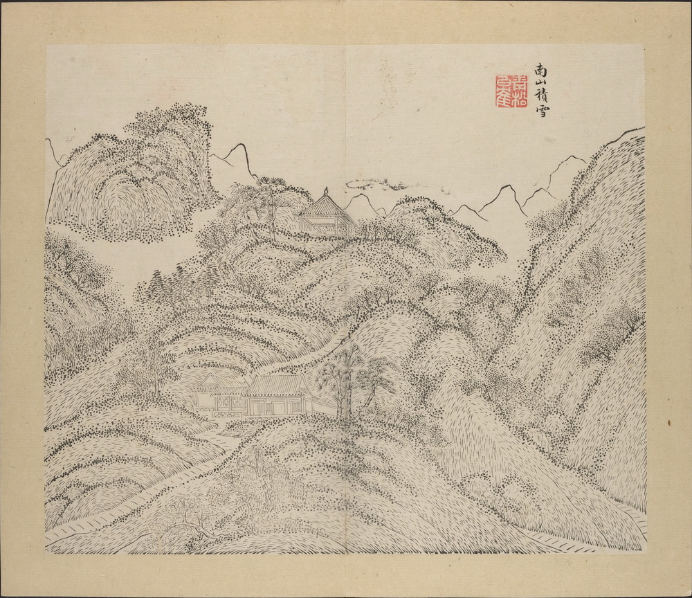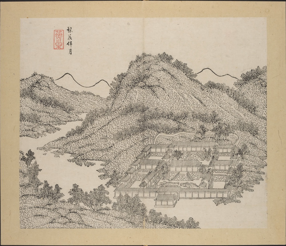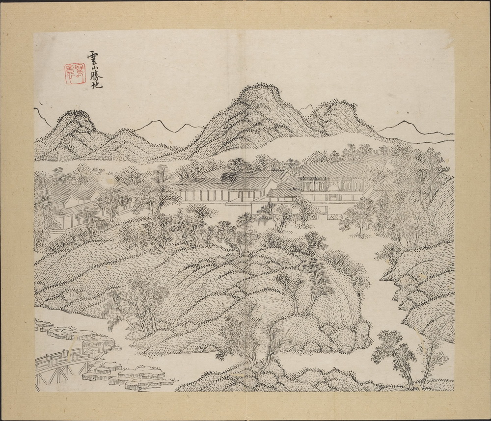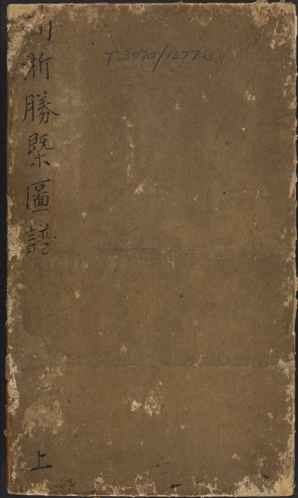描绘清乾隆时期浙江地区名胜古迹的木刻版画册,上下册总共描绘了30处风景。每幅都有题景名和朱色印记。
