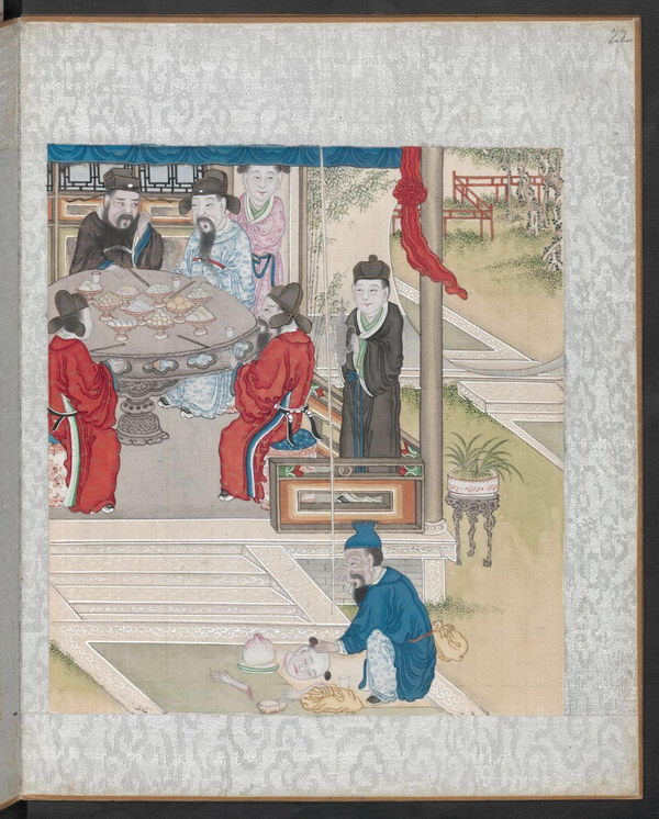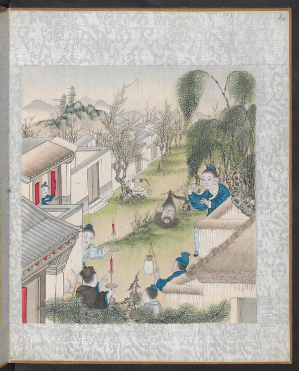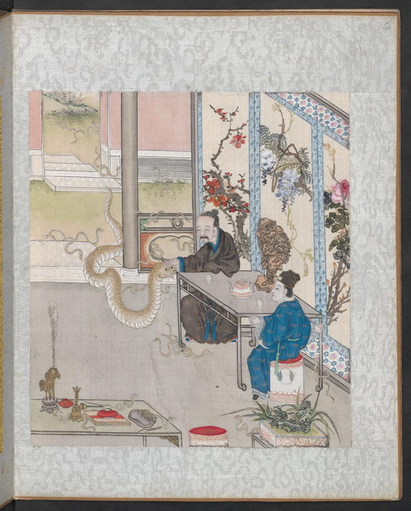 第六十册:房文淑、豢蛇、狂生、孙必振、张不量、红毛毡、负尸、鞠乐如、盗户、偷桃、口技、王兰。《聊斋全图》是描绘《聊斋志异》故事情境的彩绘连环画。