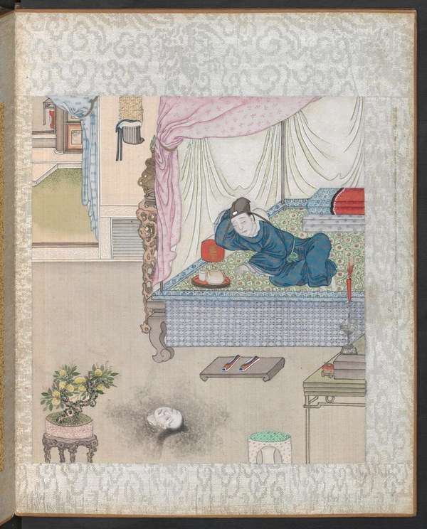 第六十九册:大蝎、黑鬼、车夫、碁鬼、头滚、果报、龙肉、念秧、阎王、布客、农人、长治女子。《聊斋全图》是描绘《聊斋志异》故事情境的彩绘连环画。