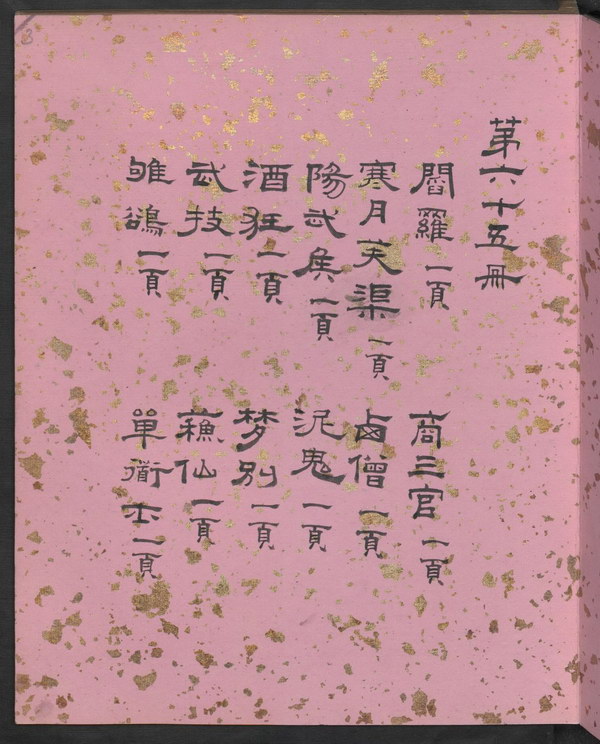 第六十五册:阎罗、寒月芙蕖、阳武侯、酒狂、武技、鸲鹆、商三官、西僧、泥鬼、梦别、苏仙、单道士。《聊斋全图》是描绘《聊斋志异》故事情境的彩绘连环画。