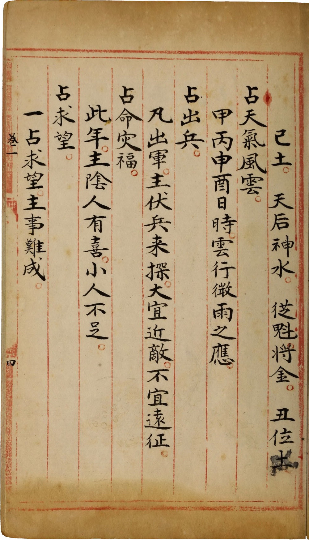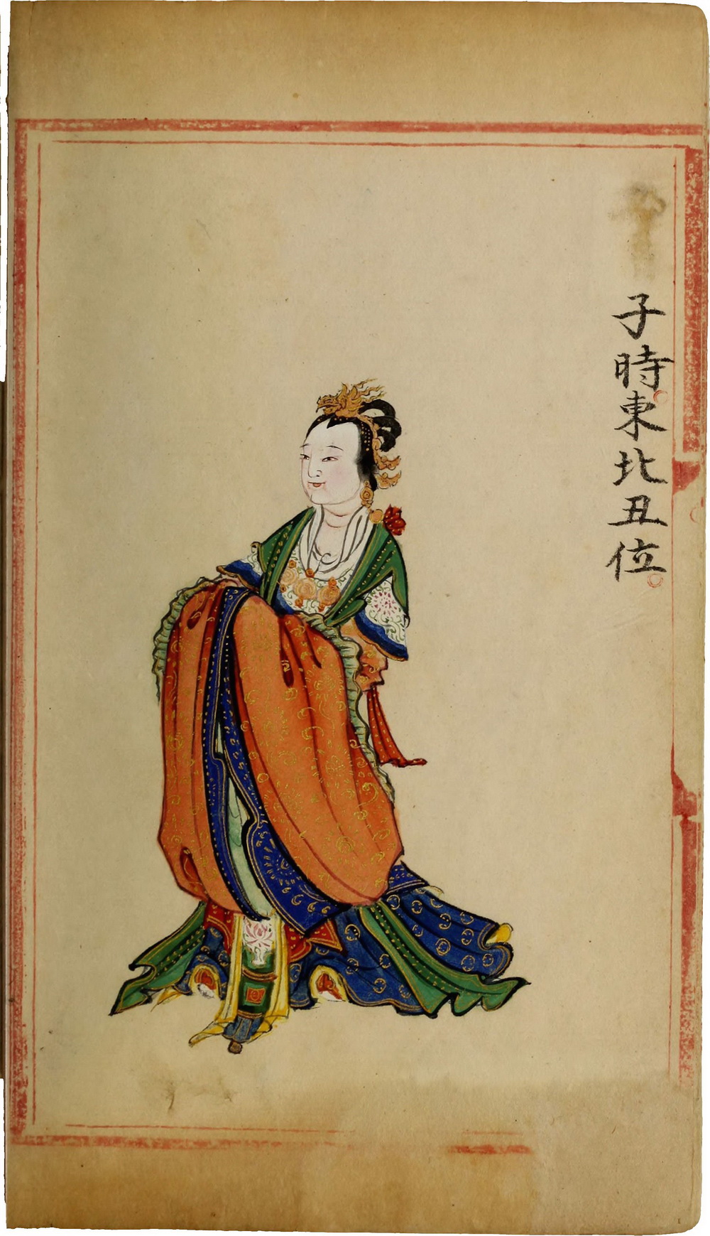 此《六壬图像》是一套孤本书。全书共二十四卷,分为:十二时辰,十二月,每卷均有12幅工笔重彩方位神煞画像,画像后是解释占卜的内容。总计288幅插图,每卷12幅画像,总24卷,每卷图像相似,适宜绘画资料参考!