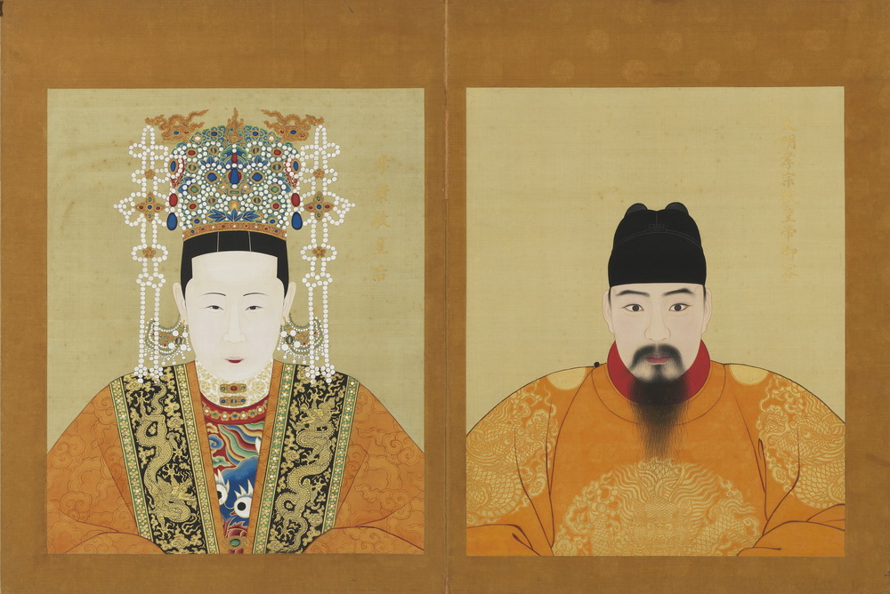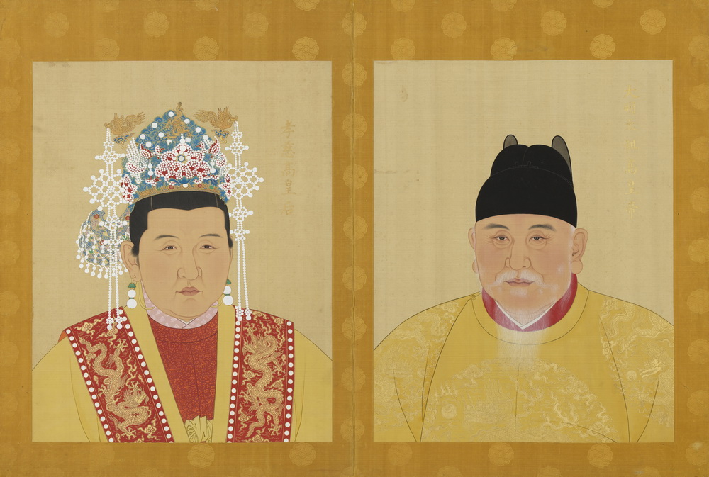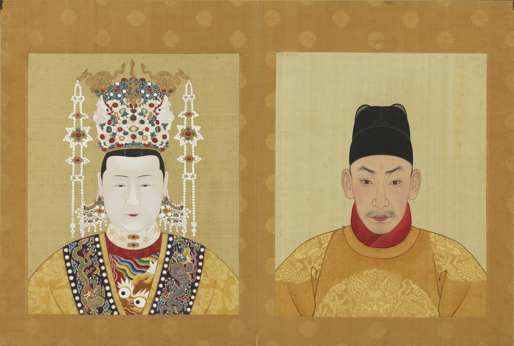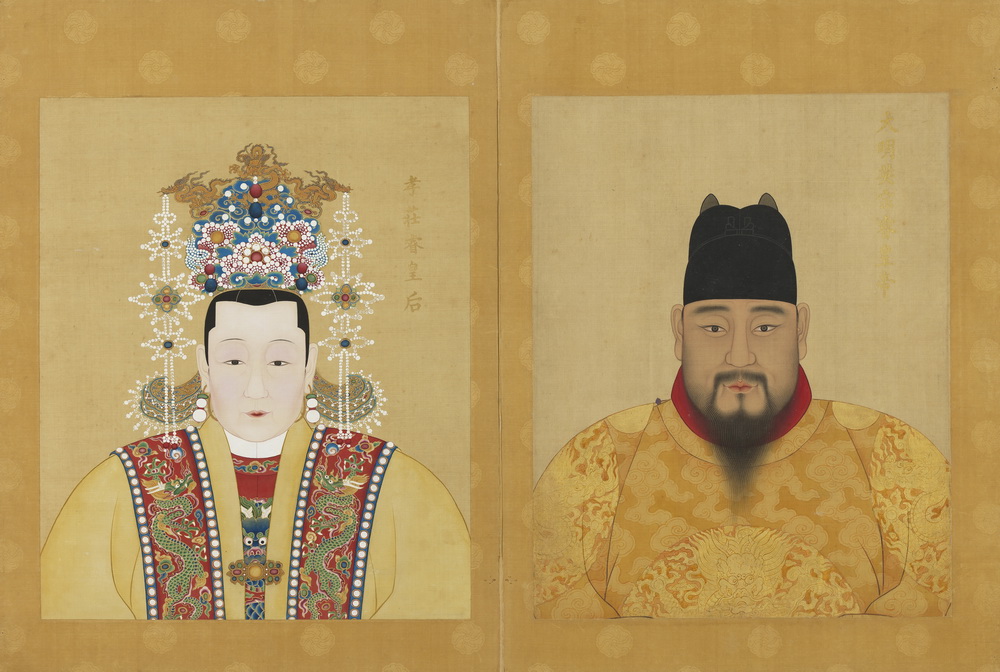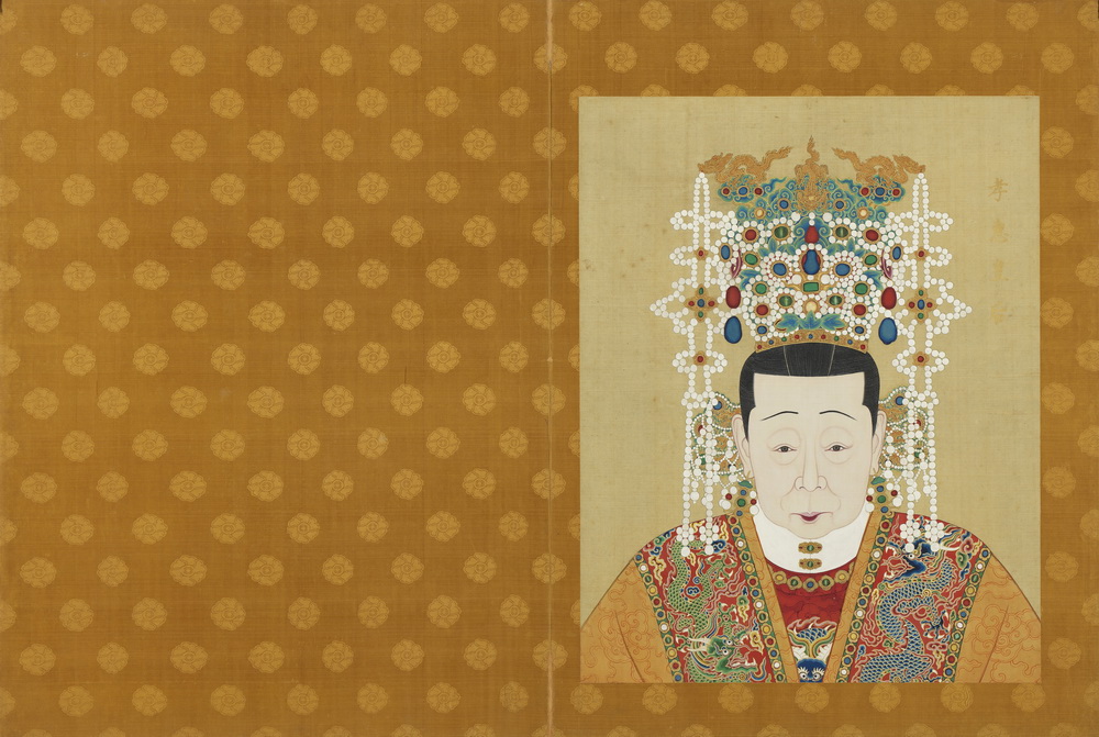 第一册共十开,共收有自太祖至武宗八帝十后之绢本设色半身肖像:明太祖高皇帝、孝慈高皇后,太宗文皇帝、仁孝文皇后,仁宗昭皇帝、誠孝昭皇后,宣宗章皇帝、孝恭章皇后,孝惠皇后,英宗睿皇帝、孝莊睿皇后,孝肅皇后,憲宗純皇帝、孝貞純皇后,孝宗敬皇帝、孝康敬皇后,武宗毅皇帝、孝靜毅皇后。