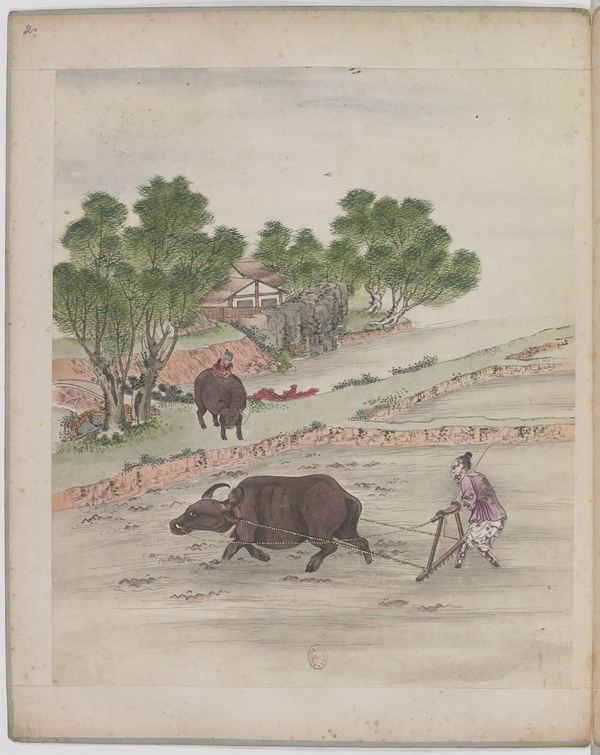 农家耕田图册 | 清末外销画