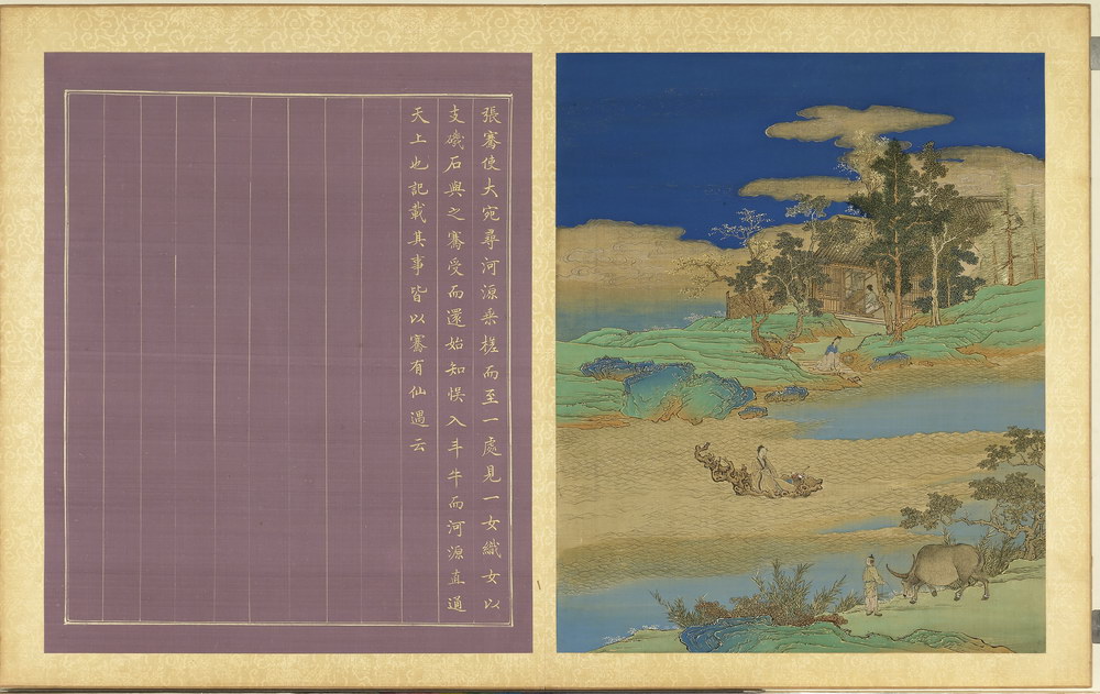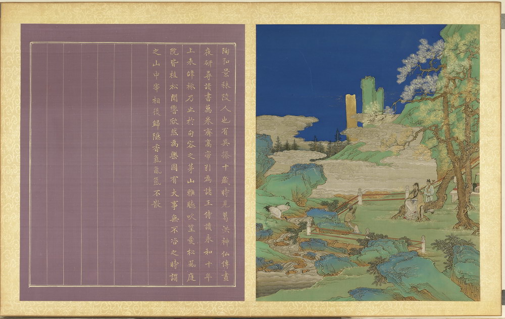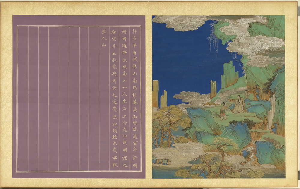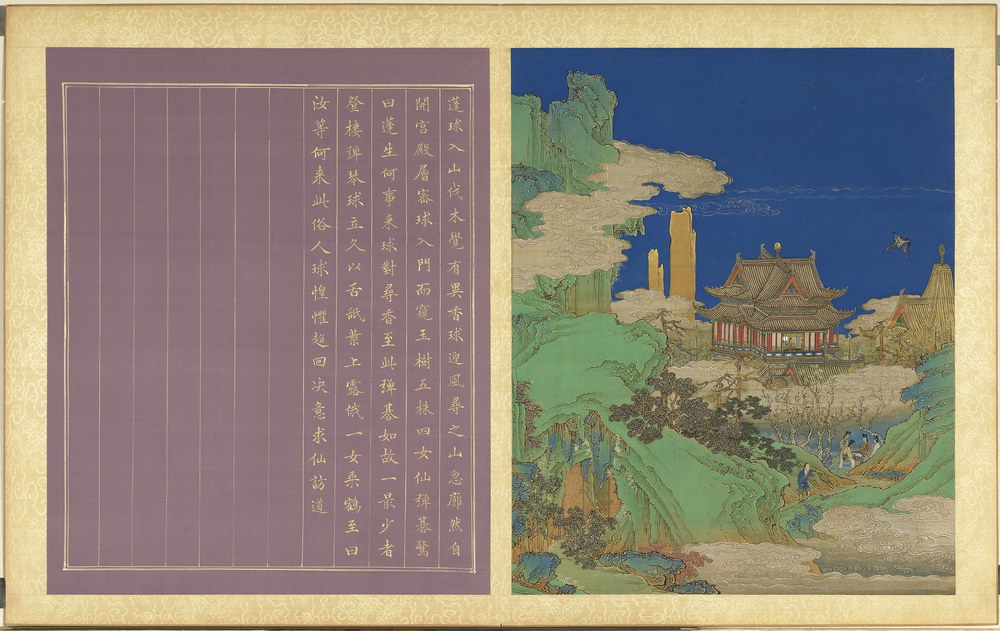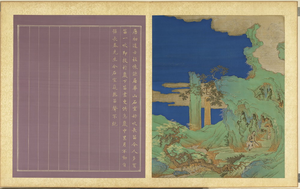 形制尺寸:图册(一函两册),绢本,设色,青绿描金,59.6×40.4厘米