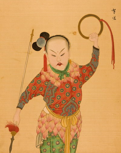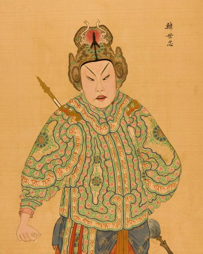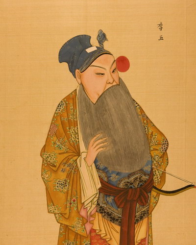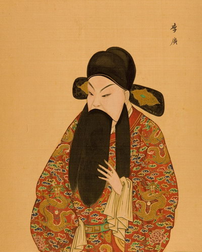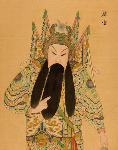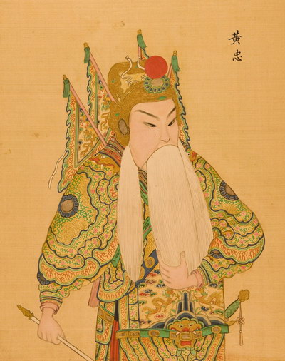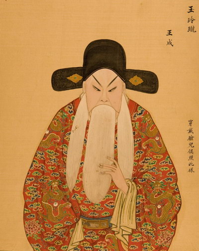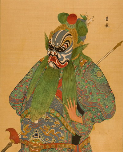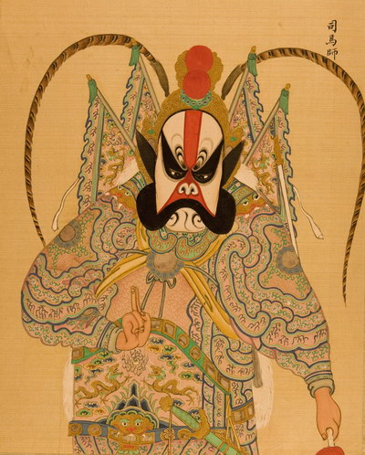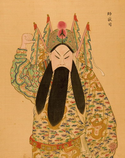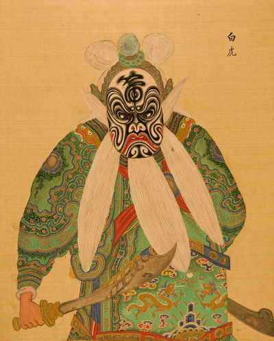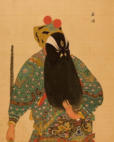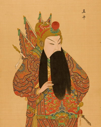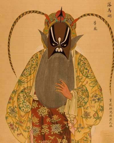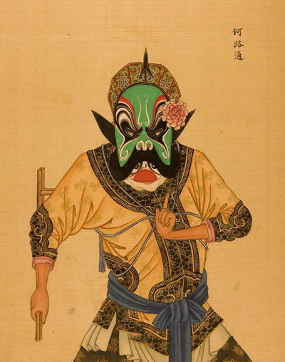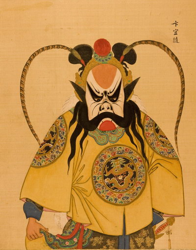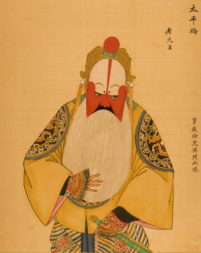 《升平署脸谱》收集中国京剧人物扮相写真图。画册虽无文字记载年代,应为清咸丰同治间(1851-1874)宫廷画师作品。故此画册当系清咸丰、同治(1851-1874)以后宫廷画师的作品。此画册收集中国京剧人物扮相写真图绘制精细,色彩明丽,丝绢、颜料均属上乘,当为帝后所用之“御赏物”。该谱具有很高的艺术和资料价值,是研究京剧早期服饰、脸谱的珍贵史料。