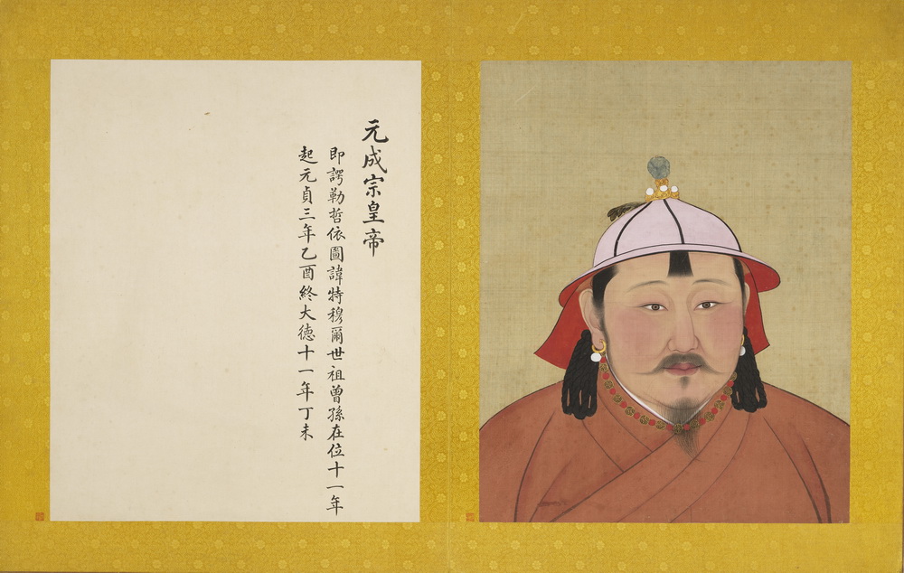 此套共八开,依次描绘:元太祖、元太宗、元世祖、元成宗、元武宗、元仁宗、元文宗、元寧宗。各对幅皆有楷书题记,注明帝王名讳及在位时间。