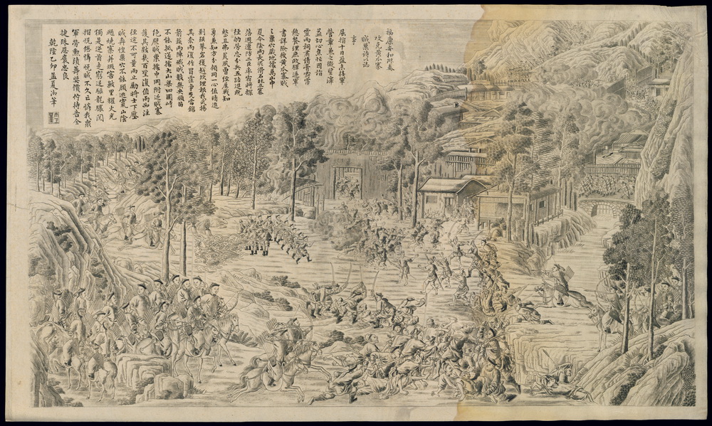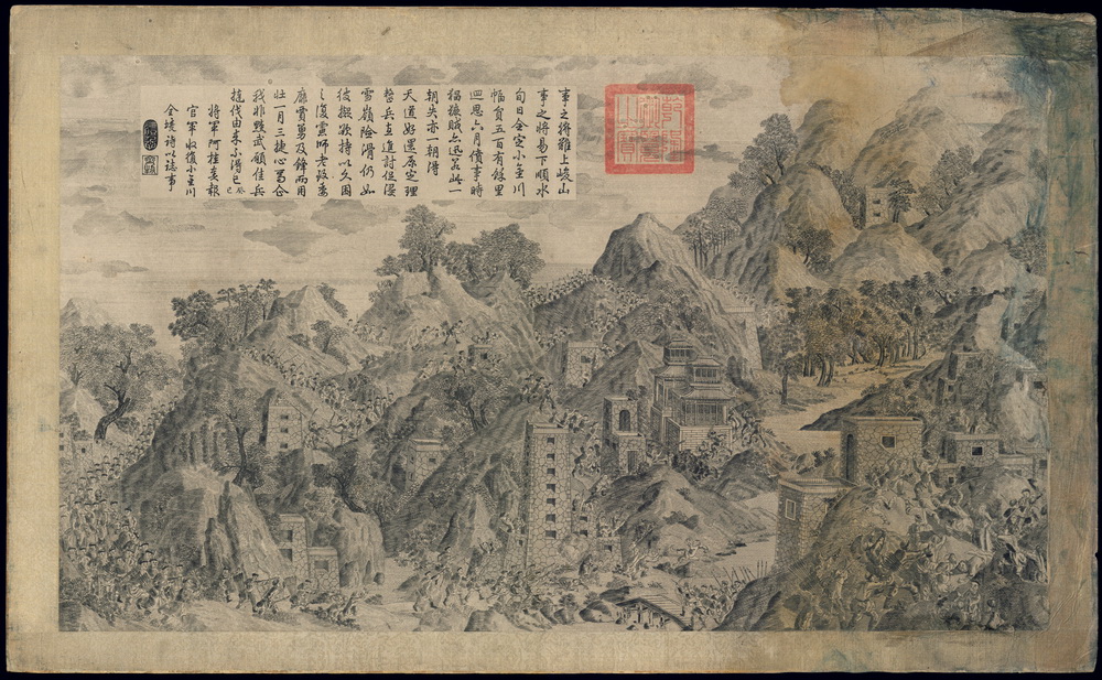 战争铜版画,是一系列可追溯至 18 世纪下半叶的铜版雕刻版画。它们是遵照清朝(1644-1911 年)乾隆皇帝(1735-1796 年在位)的旨令制作而成,描绘了其在位期间中国内陆省份和边疆的军事战役场景。这些版画的主要插图由当时供奉于朝廷的欧洲传教士艺术家绘制,包括意大利耶稣会会士郎世宁(Giuseppe Castiglione,1688–1766 年)、法国耶稣会会士王致诚(Jean-Denis Attiret,1702–68 年)、波西米亚的耶稣会会士艾启蒙(Ignatius Sichelbarth,1708–80 年)以及来自意大利的奥古斯丁传教士安德义(Jean-Damascène Sallusti,卒于 1781 年)等。第一组的 16 幅图画的雕刻版画是在巴黎(而非中国)完成的,当时巴黎的工匠对这项技术最为精通。乾隆皇帝甚至下令这些版画必须依照他所熟知的奥格斯堡铜版雕刻家格奥尔格·菲利普·卢根达斯(Georg Philipp Rugendas,1666-1742 年)的风格完成。郎世宁及其在北京的同僚先绘制小尺寸的画作底稿送至法国,然后转刻在铜版上并进行印制,再与铜版和版画一起送回中国。后面几组雕刻版画是这些传教士在北京的学徒制作的,风格及精巧程度与在巴黎制作的版画有明显差别。乾隆时期的战争铜版画只是满族皇帝记录其军事扩张以及地区暴动镇压战役的方式之一,旨在颂扬其统治并从意识形态上控制中国编史工作。在中国艺术史上,铜版雕刻版画只是一个插曲。从当时的政治背景来看,乾隆时期的版画代表了一个独特的绘画流派,是其好大喜功的典型例证。柏林国家图书馆的东亚部门收藏了五个系列的共 64 幅版画。