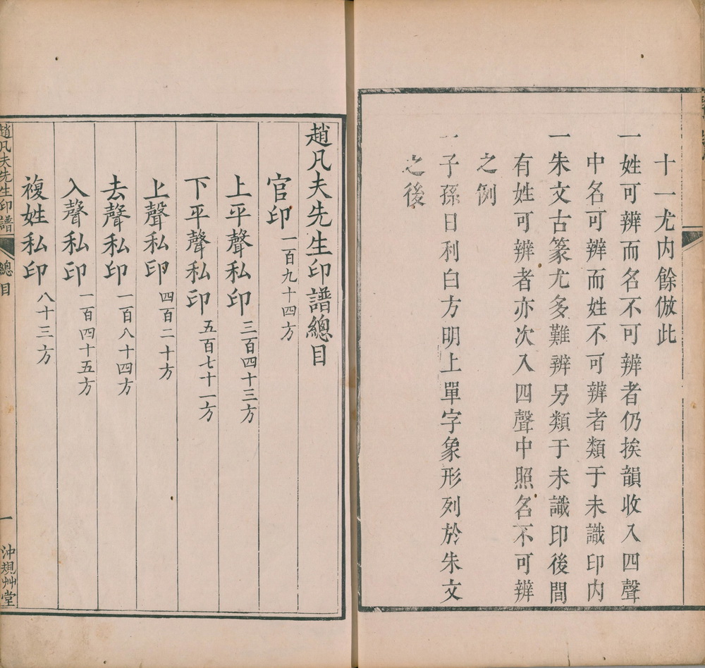 此书为十二卷本,成书于乾隆十年,卷首有赵宦光《刻符经序》及吴翀序。首列相传为秦代的九字壐,以下按官印、私印、吉语、单字及图案印编次,共存印二千一百六十三方。