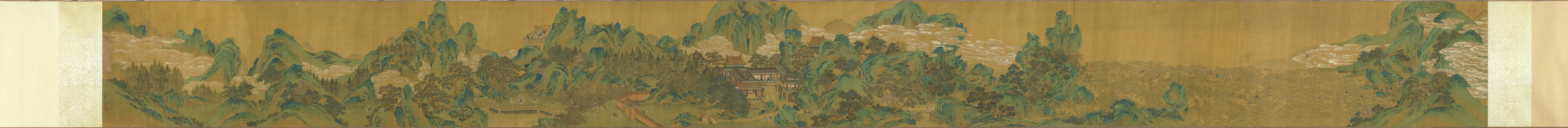 形制尺寸:卷轴,绢本,青绿设色,440.5×40厘米