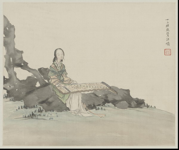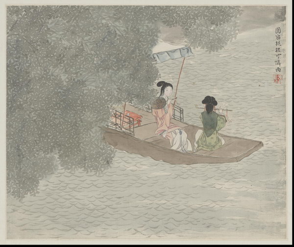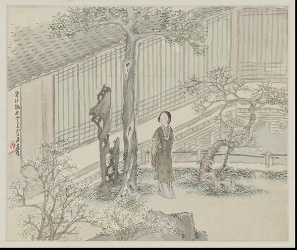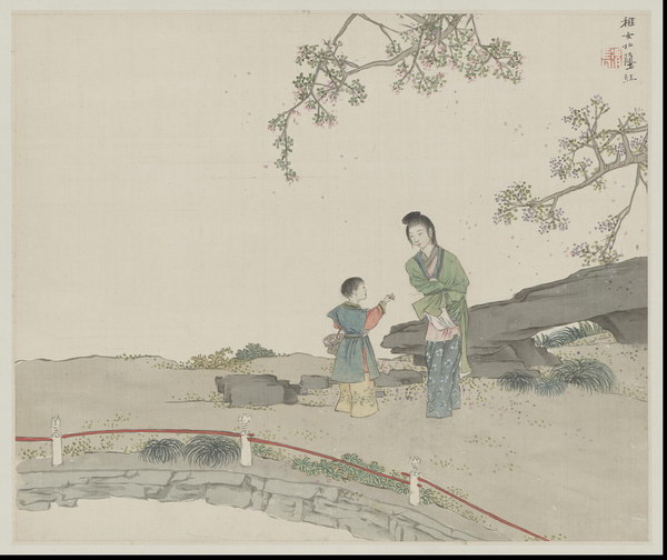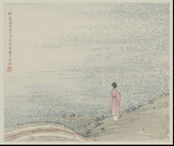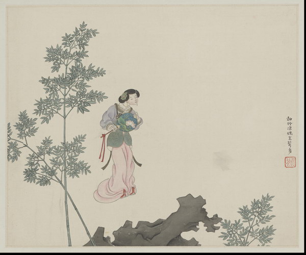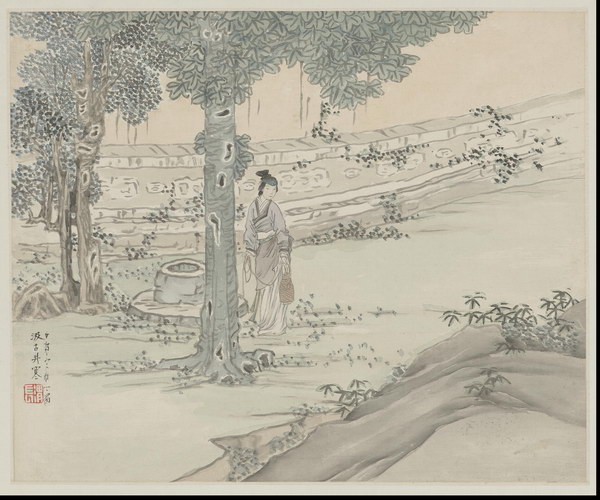 此套共十册(本文为第十册),每册十二开,每开除录有姚燮诗句外,还分别钤“熊”朱文印或“渭长”白文印。册页最后另有四开,分别有任熊、熊松之、吴云、沈钰、曹峋、李鸿裔等人题跋。据任熊自跋,作品完成于咸丰元年(1851年),时年29岁。