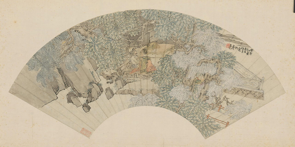 形制尺寸:图扇,纸本,设色,18.9×56厘米