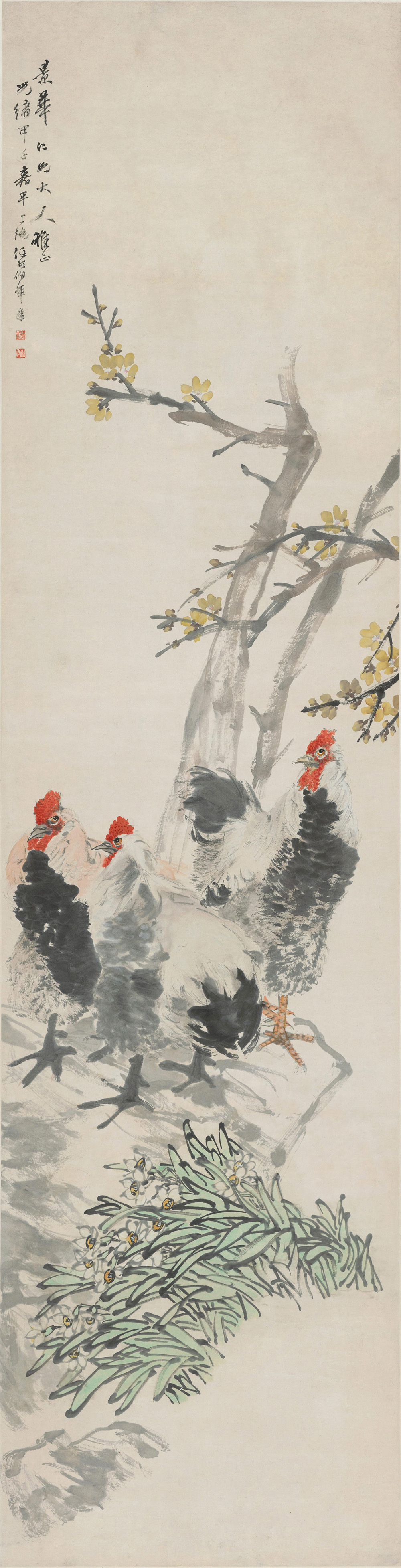 形制尺寸:立轴,纸本,设色,186×47厘米