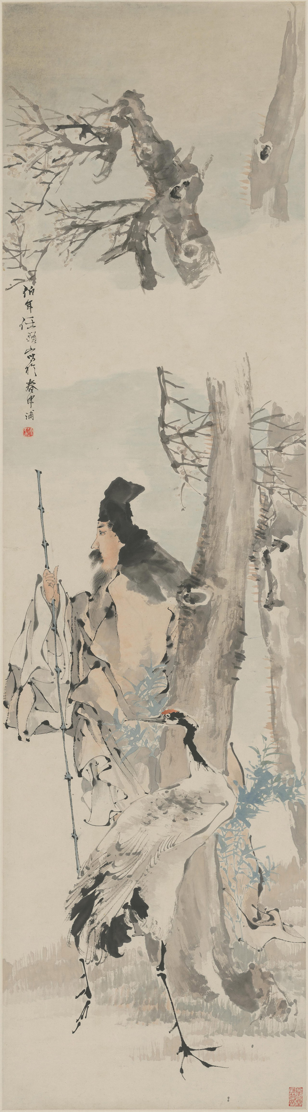 形制尺寸:立轴,纸本,设色,155.5×43.5厘米
