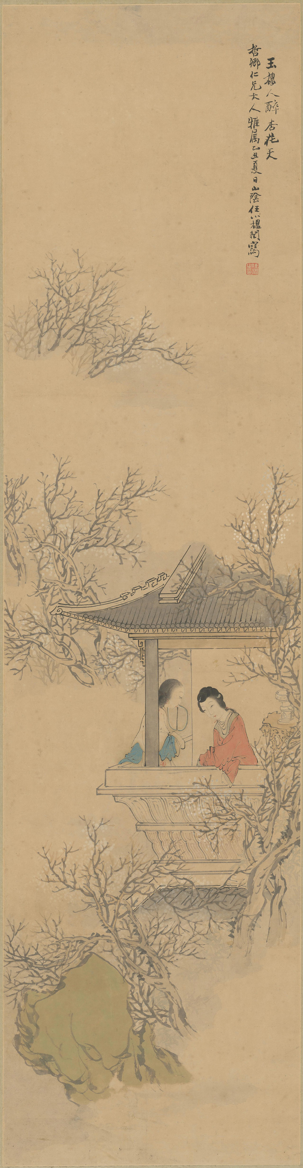 形制尺寸:立轴,纸本,设色,128.9×32.9厘米