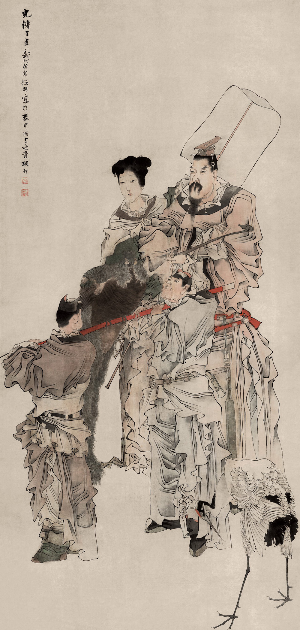 形制尺寸:立轴,纸本,设色,121.6×27.3厘米