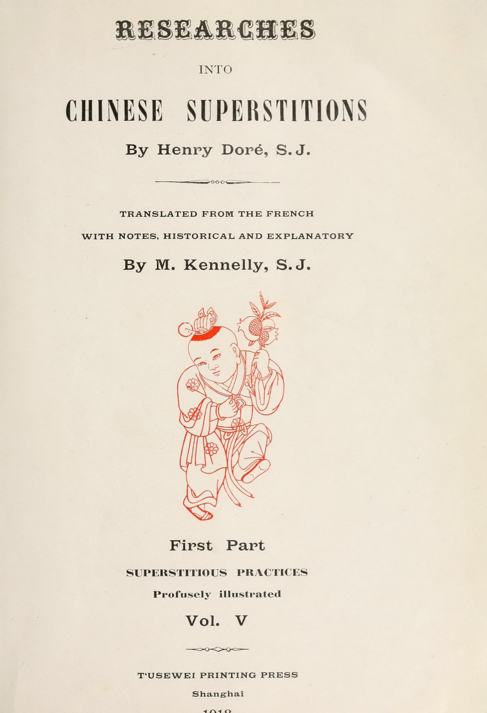 英文书名:Researches into Chinese superstition;法文书名:Recherches sur les superstitions en Chine