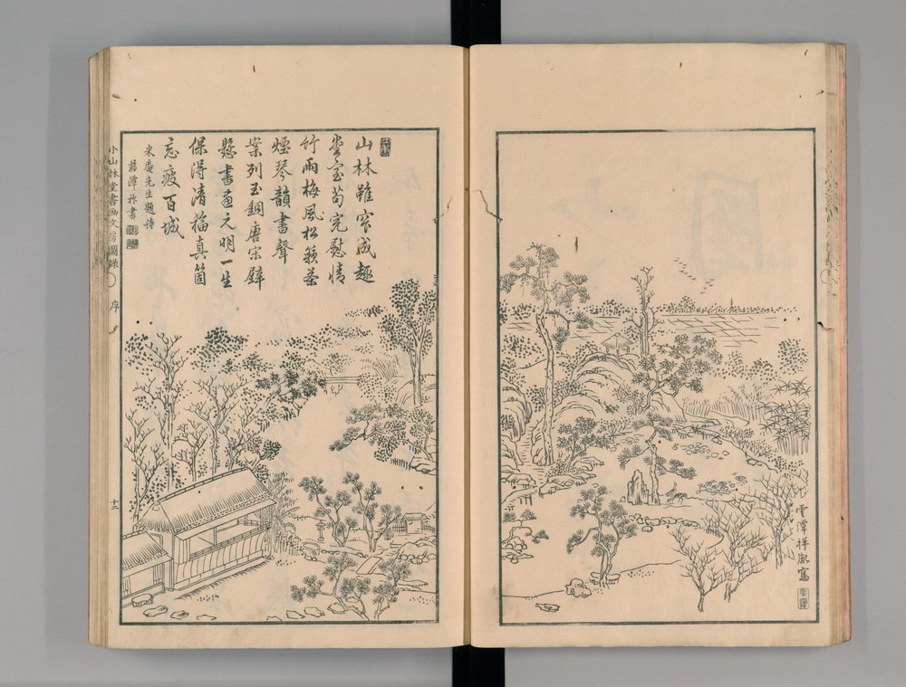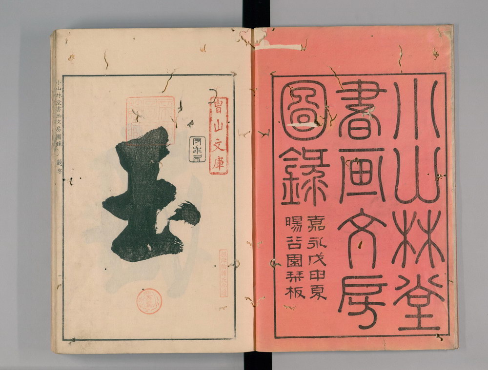 《小山林堂书画文房图录》为市河米庵辑录其三世所藏中国历代书画文房雅玩二百四十种,彚为一编。分书画、铜器、玉器、杂项四大类。书画最富,共七卷,按时代先后依次为唐宋元一卷,明代四卷,清代二卷。杂项中又分古琴、笔墨纸砚及奇石等,皆有关于文房雅玩之属。