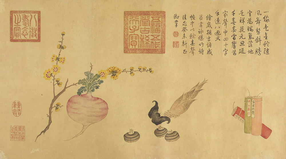 钤印信息:八徵耄念之宝、五福五代堂古稀天子宝、意在笔先