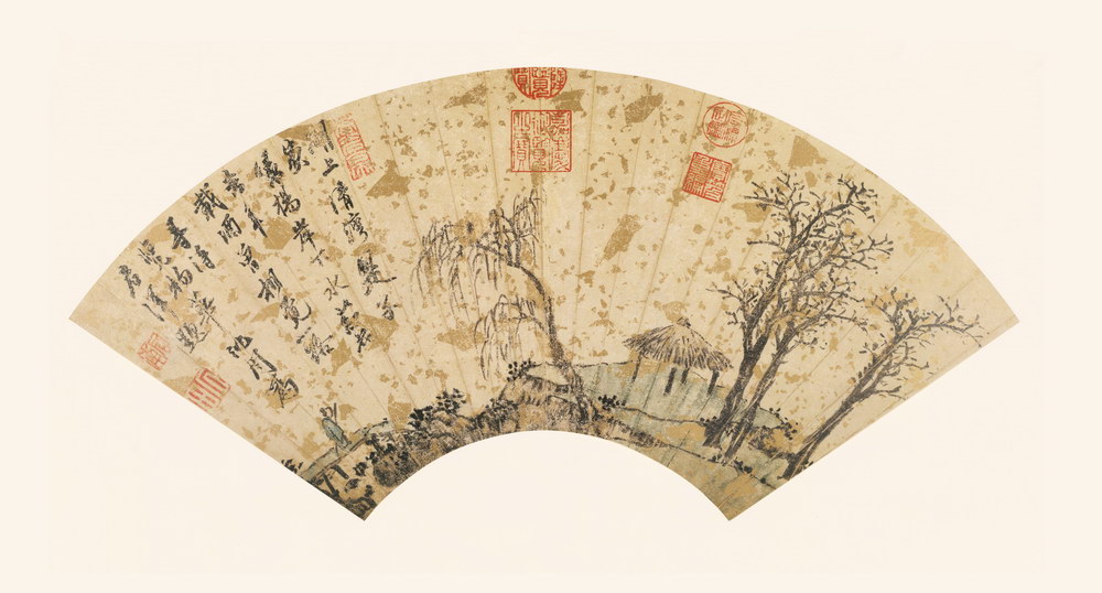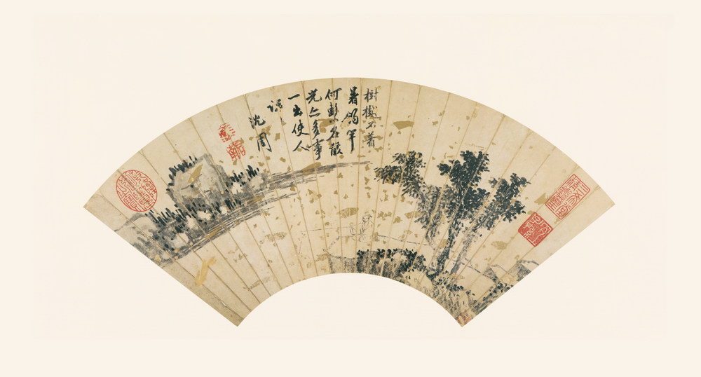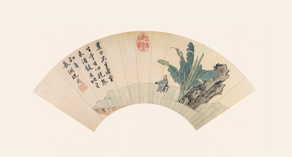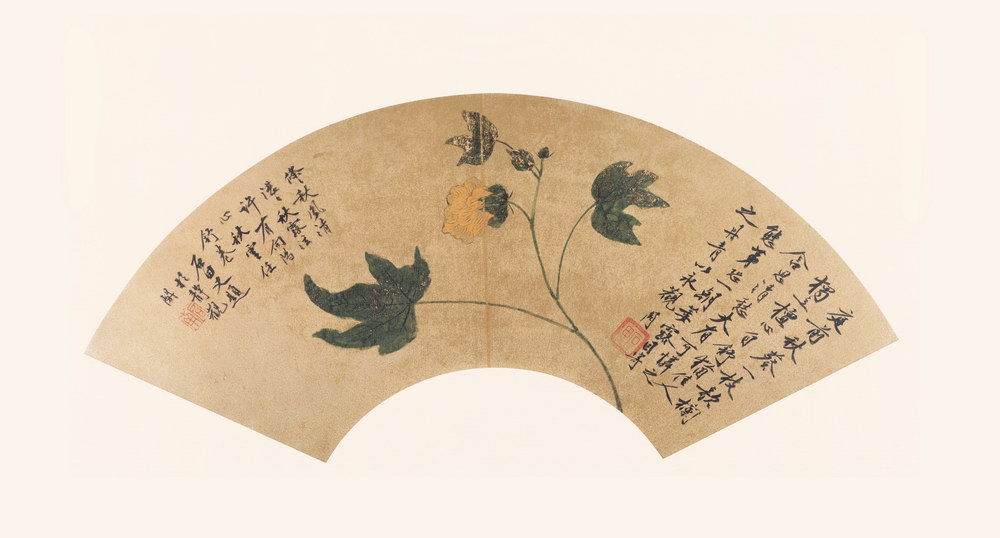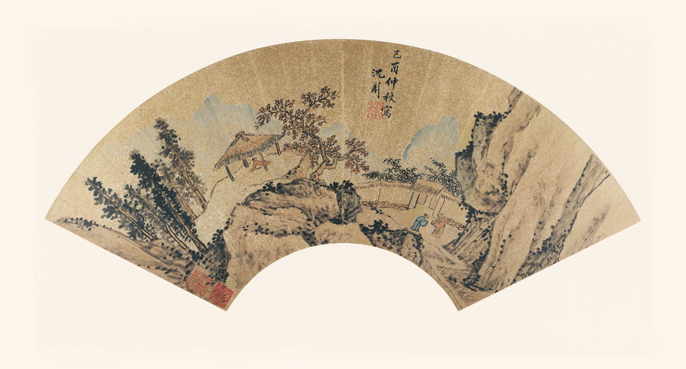 形制尺寸:图扇,纸本,设色,18.1×52.4厘米