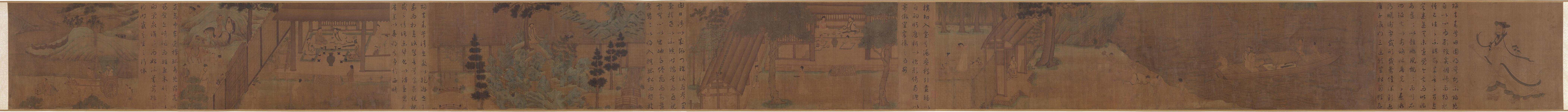 《归去来辞书画卷》大约绘于南宋时期,作者不详。题材取自东晋末陶渊明不愿为五斗米折腰,离开宦场而作的抒情小赋《归去来兮辞》。卷首是陶渊明像,后一图一文依次描绘了他辞官后归隐的生活情趣和内心感受。