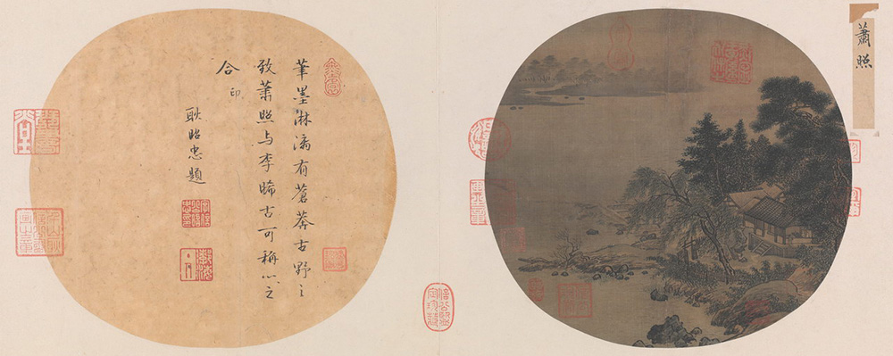 描绘文士于水畔居所清读的精品。画中远景湖山风光旖旎,近处房舍临湖而建,一人于堂内展卷阅读,沉浸其中。在古代,无数士子就是在图中这种乡间瓦堂茅舍中,或为陶冶身心,或为蟾宫折桂,以期通过勤奋苦读来实现人生理想。此图可谓古代读书人的生活缩影,其所展现的不仅是画面的耕读情境,更包含着崇文重教这一绵延几千年的优秀传统。