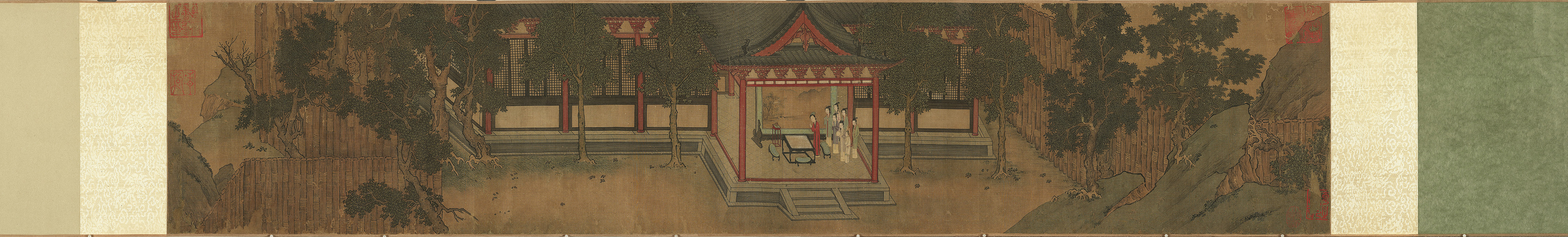 此卷描绘七夕夜晚,宫廷中女性向织女星求智巧习俗的场景。