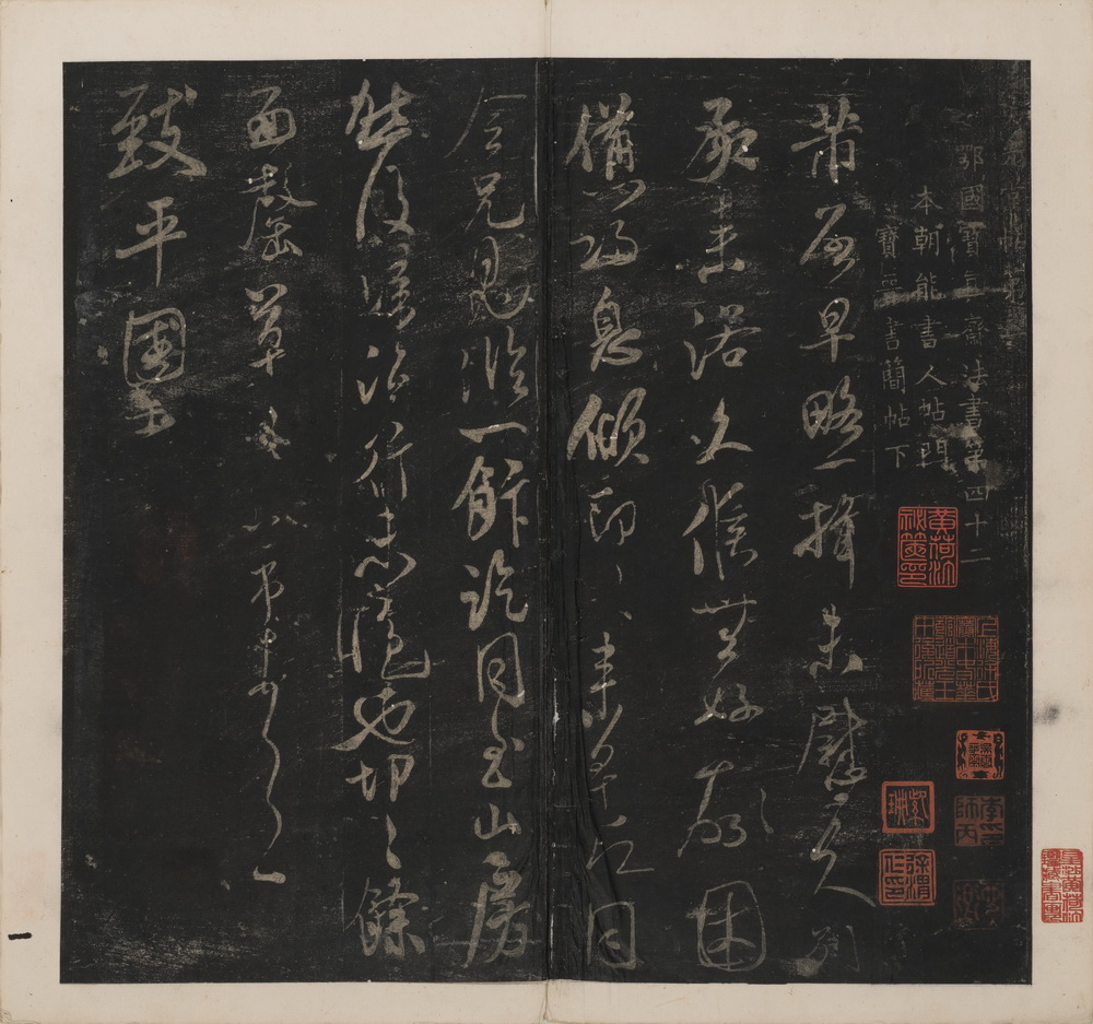 《英光堂帖》为南宋私家所刻米芾书法专帖。其中所收录各帖的墨迹母本均已散失。全帖较为忠实的保存了行楷、草书等多种米书面貌,书迹年代早晚兼备,展现了米芾不同时期的书名方式,这也为鉴定米芾其他书法作品提供了绝佳参考。