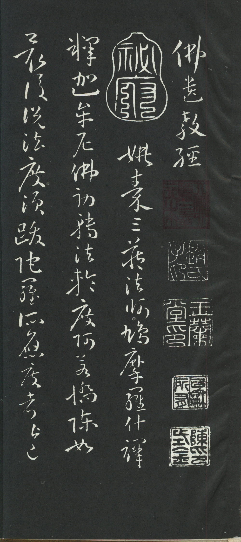 南北朝时代,经姚氏后秦高僧鸠摩罗什(印度人,生于新疆,精通汉文。公元401年即后秦弘始3年,秦帝姚兴邀入长安,专译佛经)译成汉文,后经唐朝书家孙过庭手书,而成为历代王朝的内府秘本,到清朝中叶流落士大夫之手后方有刻石传世。但沧桑变迁,加之战乱侵扰,原刻石不知所向。从此,孙过庭书《佛遗教经》在国内绝迹。