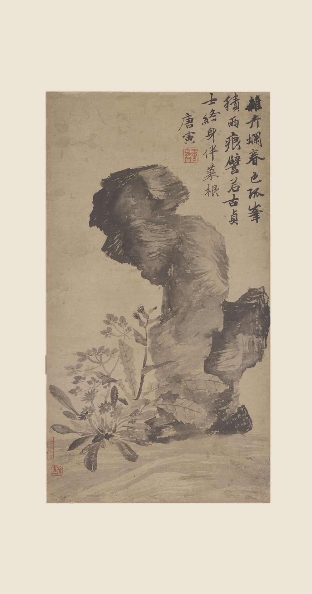 款识:杂卉烂春色,孤峰积雨痕。 譬若古贞士,终身伴菜根。