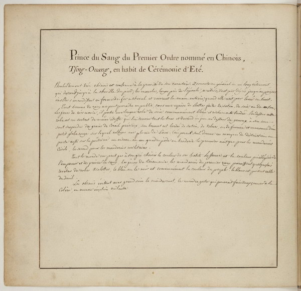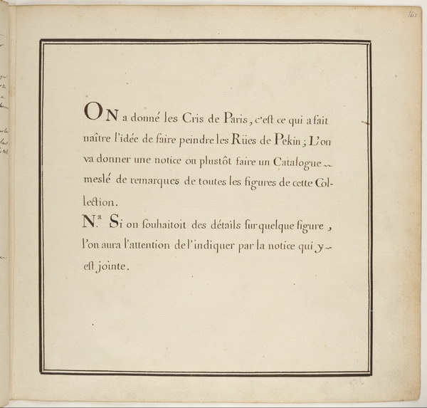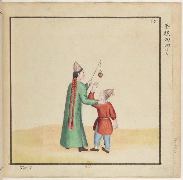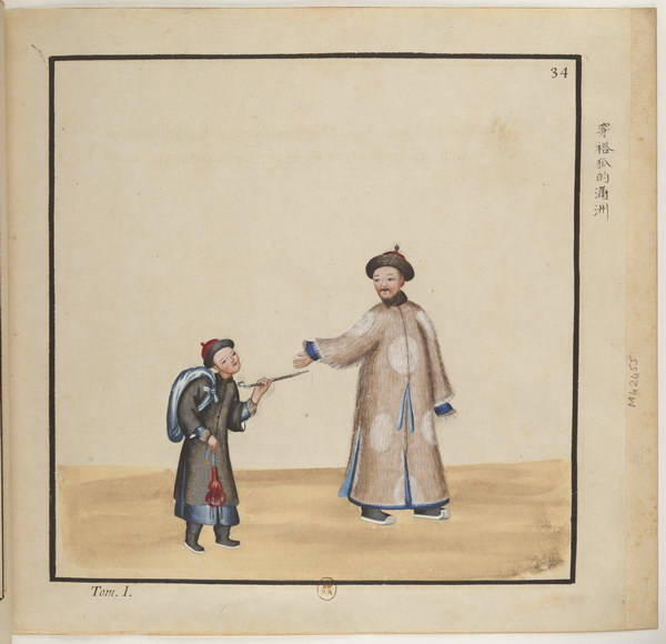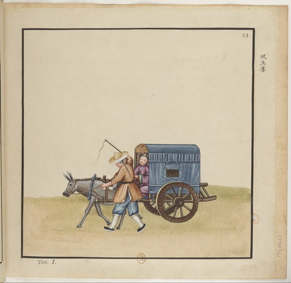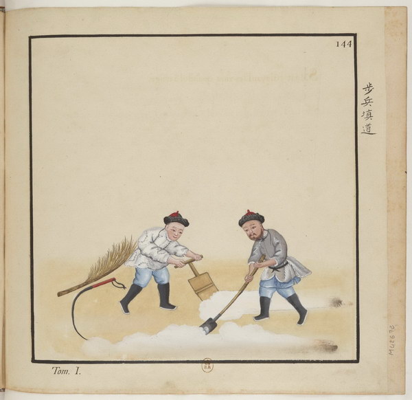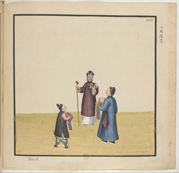 全面记录了晚清西方人在京城观察到的街市交通往来人物角色、街头各行业和艺人,每幅绘图旁都有中文批注。通过此画册可以简单清末北京民俗和各行业的状态。第一册有193幅图:人物涉及到王公贵胄,公主命妇,满汉官员,兵弁杂役。官员车马,社交礼仪,民间交通,佛僧道士,外藩异族,四时服装。