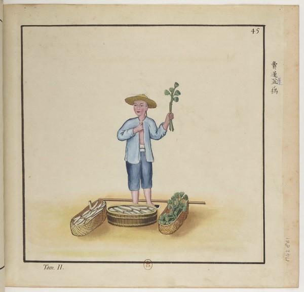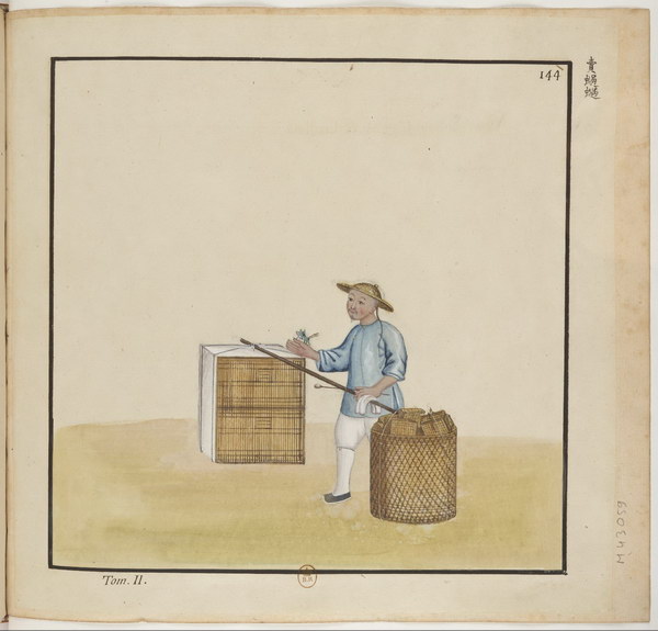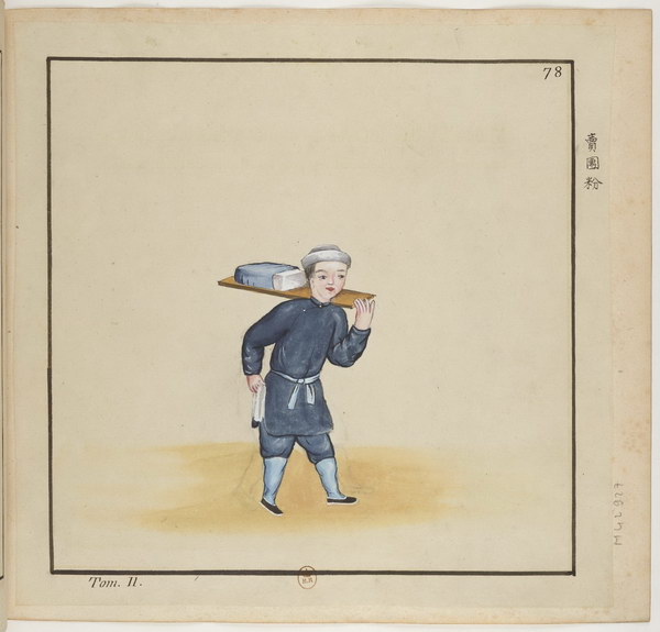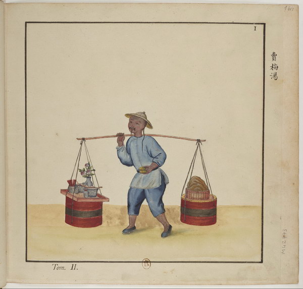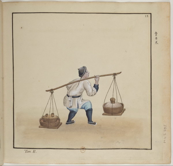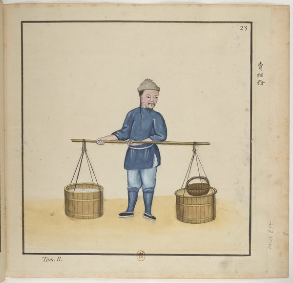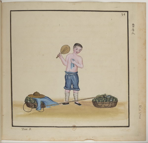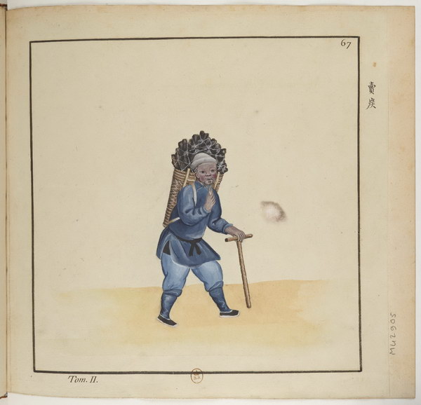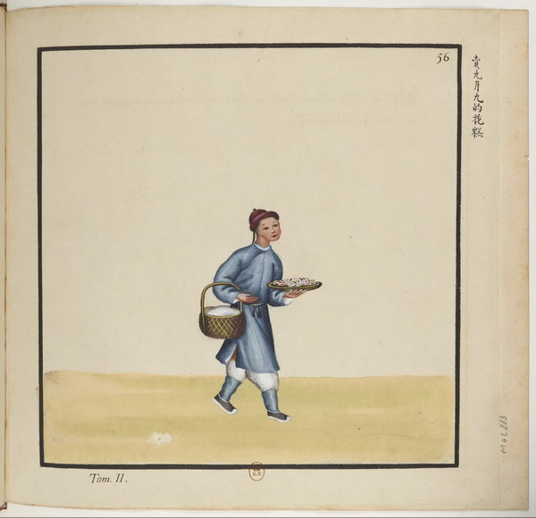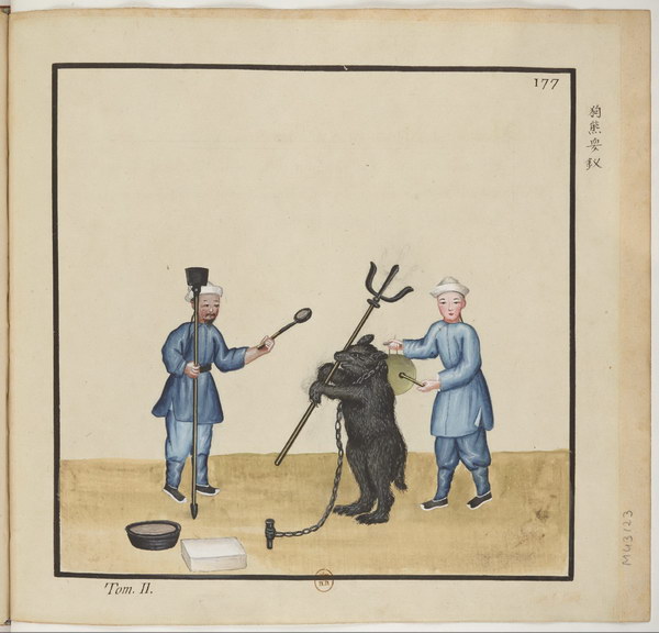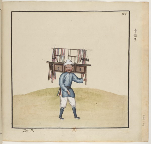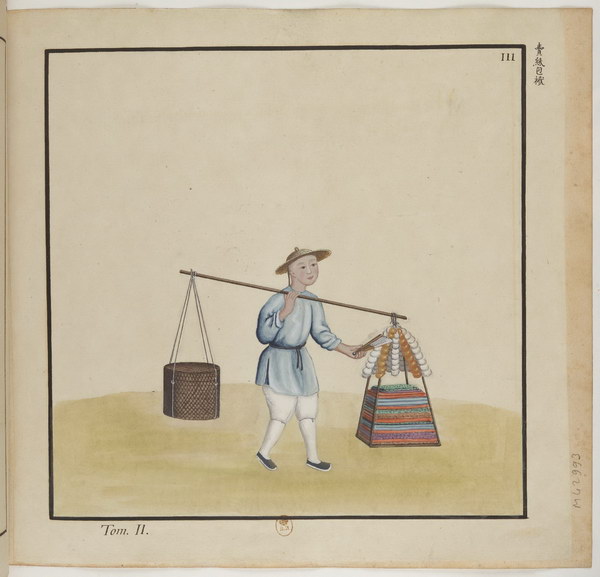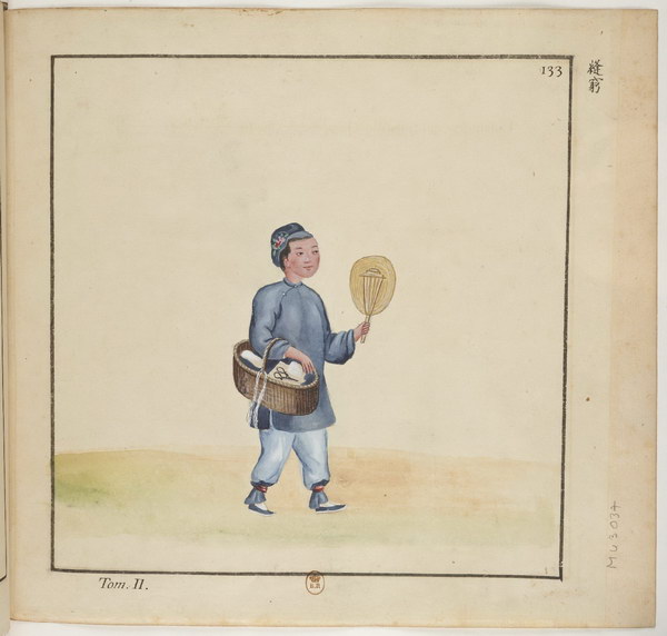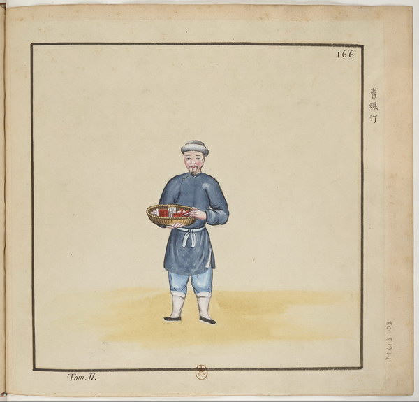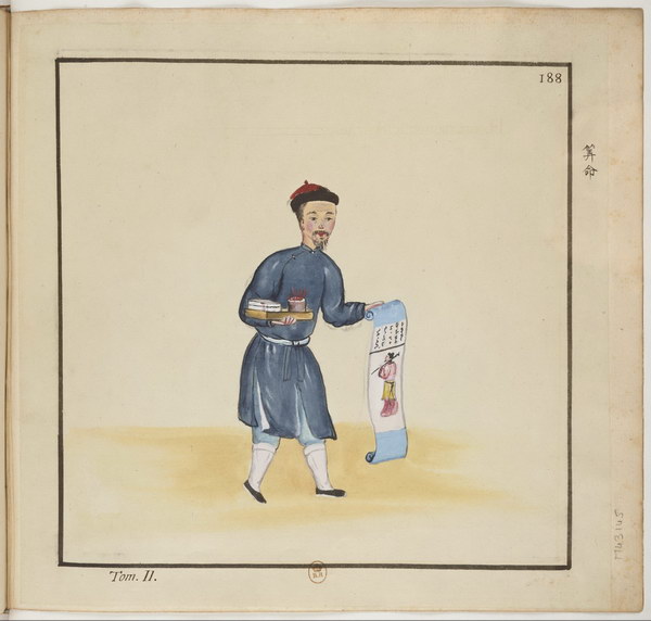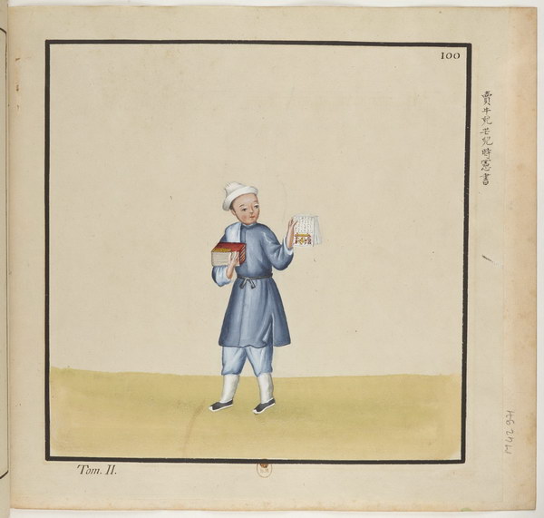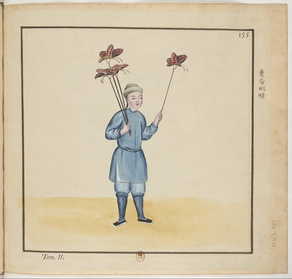 全面记录了晚清西方人在京城观察到的街市交通往来人物角色、街头各行业和艺人,每幅绘图旁都有中文批注。通过此画册可以简单清末北京民俗和各行业的状态。第二册有193幅图:人物涉及到街尾巷头的把式艺人,有练武摔跤,杂耍说唱, 算命占卜, 耍猴玩熊;走街串巷的游商小贩, 内容包括衣食住行,琴棋书画,吃喝玩乐,女红妇用。