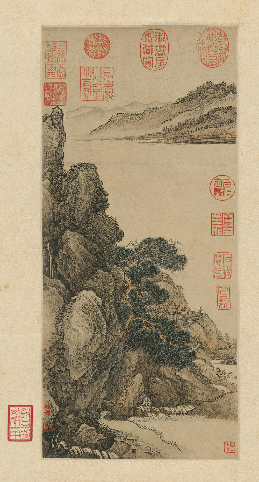 画作之中,王翚笔下的藤盘绕蜿蜒而上,乔松枝叶交错,用笔挥洒,用墨酣畅。用李鱓的诗在此也刚好合适:“漫惊笔底混龙蛇,世事谁能独起家。松因掩映多苍翠,藤以攀高愈发花。画作里,王翚熟练用各种皴法,展现出了山的苍劲,配合随处可见的直接赭石色打底,丹青之上,老辣苍翠。在其86岁的时光里产生的作品里,此幅画作中规中矩,陌生又熟悉。