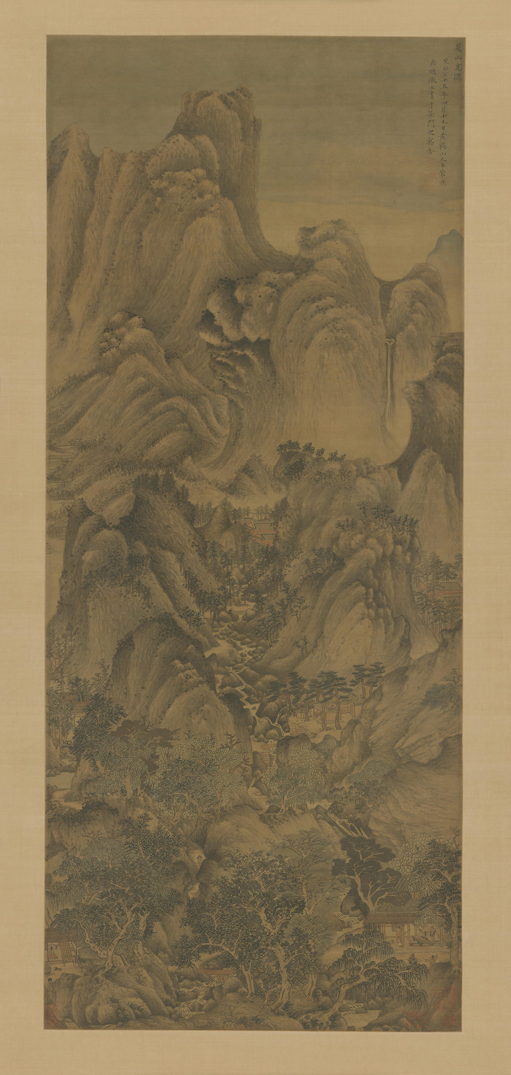 右上自题:“夏山高隐,至正二十五年四月十七日,黄鹤山人王蒙为彦明征士画于吴门之寓舍。”按至正二十五年为1365年,王蒙时年57岁。此时正是其创作的高峰期,这一时期他画有大量以隐居为题材的作品,此即其中最具代表性的一幅。