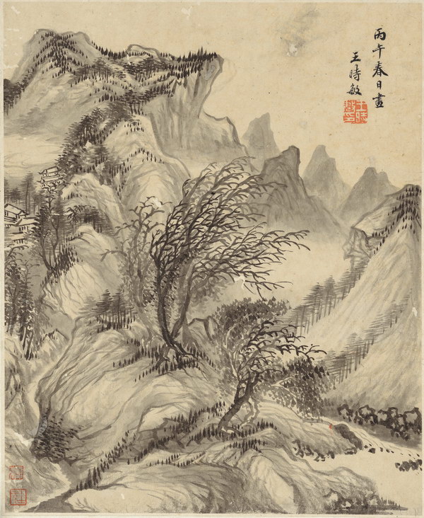 款识:丙午(1666年)春日画,王时敏。
