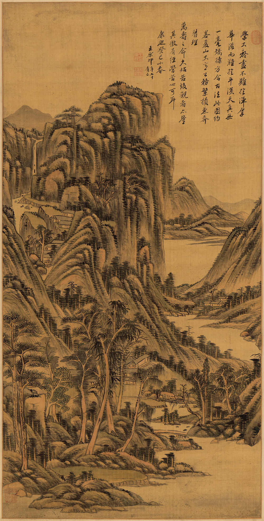 款识:学大痴画不难于浑厚华滋而难于平淡天真,无一毫矫揉,方合古法,此图约略夏山大意,公务繁积,兼奉督呈万寿之命久,始告竣,观者亦鉴其微有经营苦心可耳。康熙癸巳(1713年)小春,王原祁年七十有二。