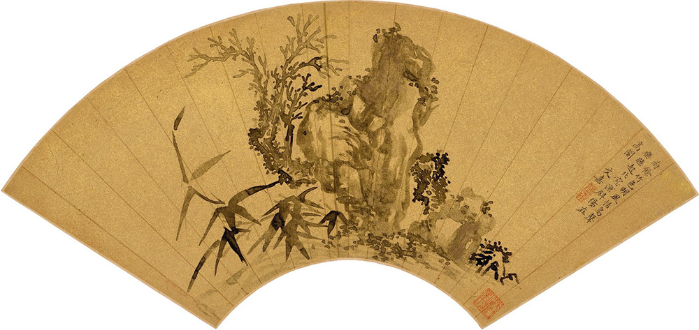 形制尺寸:图扇,绢本,墨笔,23×50厘米