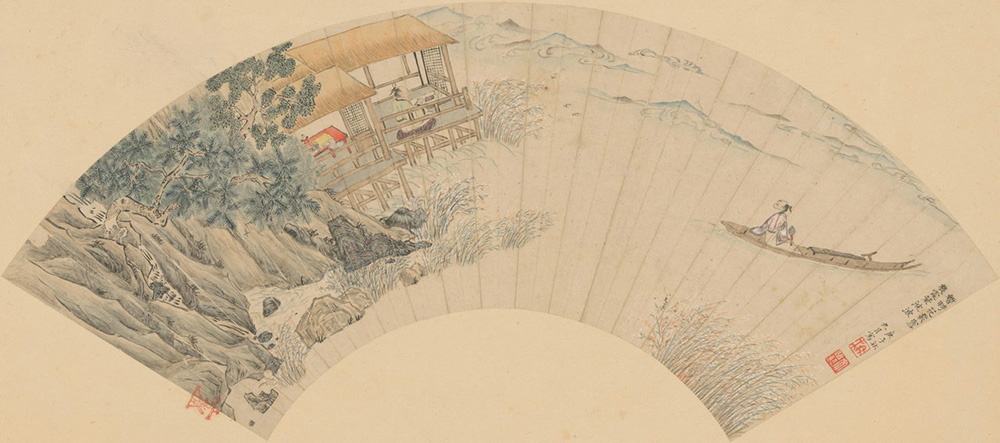 形制尺寸:图扇,纸本,设色,16.1×51.3厘米