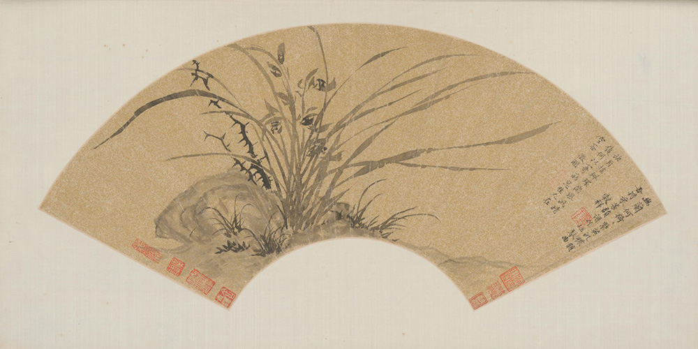 形制尺寸:扇页,金笺 ,墨笔,18.7×54.2厘米