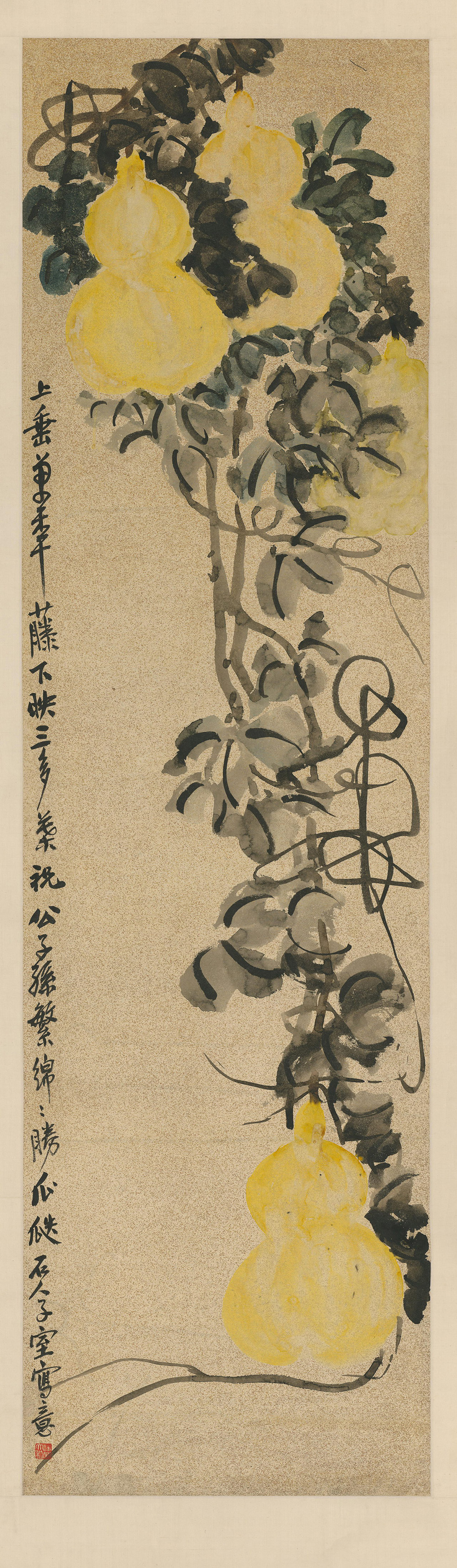 形制尺寸:立轴,纸本,设色,163.4×47.5厘米