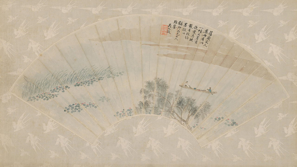 形制尺寸:图扇,纸本,设色,19.5×53.7厘米