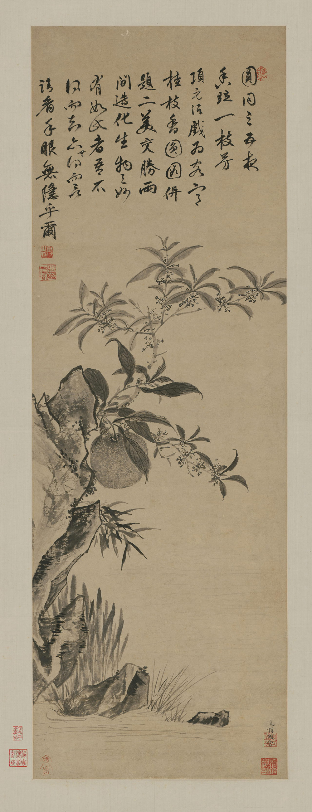 题款:圆同三五夜,香并一枝芳。项元汴戏为客写桂枝香圆图并题,二美交胜,两间造化,生物之妙有如此者,吾不得而知,亦无得而言,请看手眼无隐乎耳。