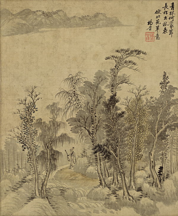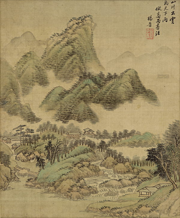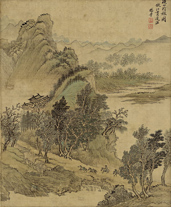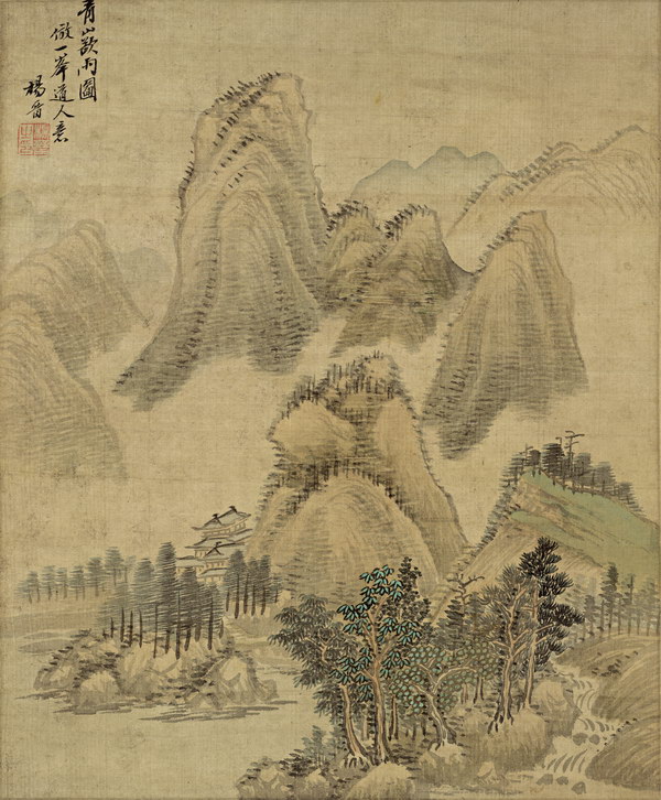 此册计仿先代名家山水十二帧:王诜、赵孟頫、黄公望、王蒙、高克恭、董源、唐寅、江参、赵大年、文徵明、王维.题仿十二家笔。【本文暂缺1幅】