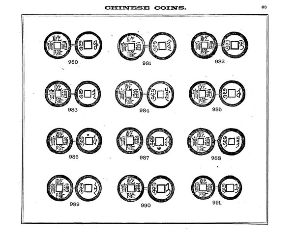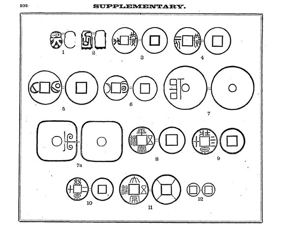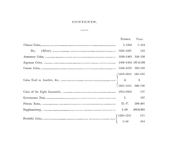 主要内容是远东地区:中国、安南、日本、朝鲜的古代钱币及护身钱币。此为其中图版部分:204版,近2000种钱币图案。此书共三卷,第一卷为描述,第二卷图版,第三卷为索引。书名:The currency of the farther East from the earliest times up to 1895,by J.H. Stewart Lockhart