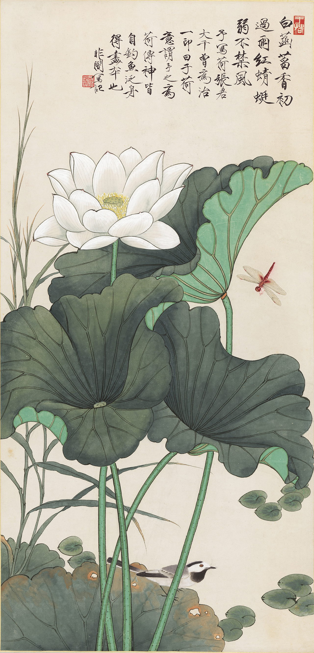 荷塘蜻蜓翠鸟图轴 | 近现代/于非闇