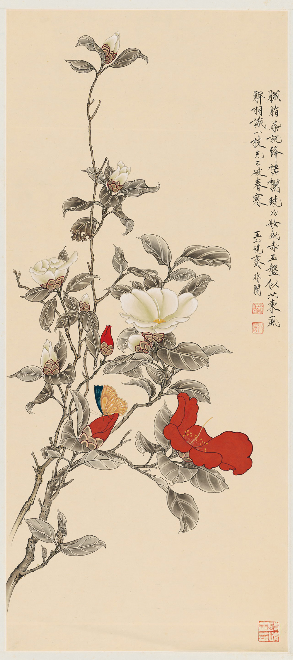 红白茶花图轴 | 近现代/于非闇