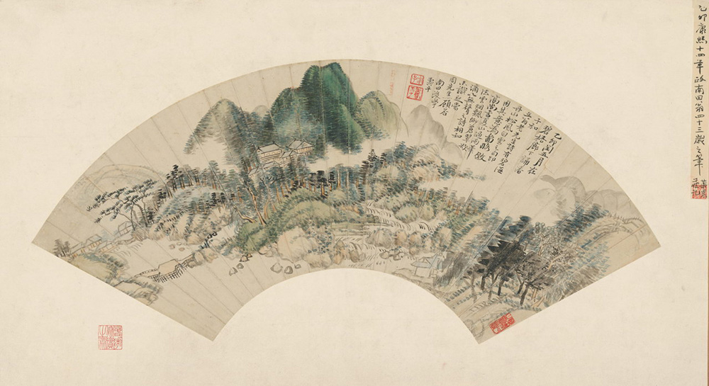 形制尺寸:图扇,纸本,设色,17.1×52厘米
