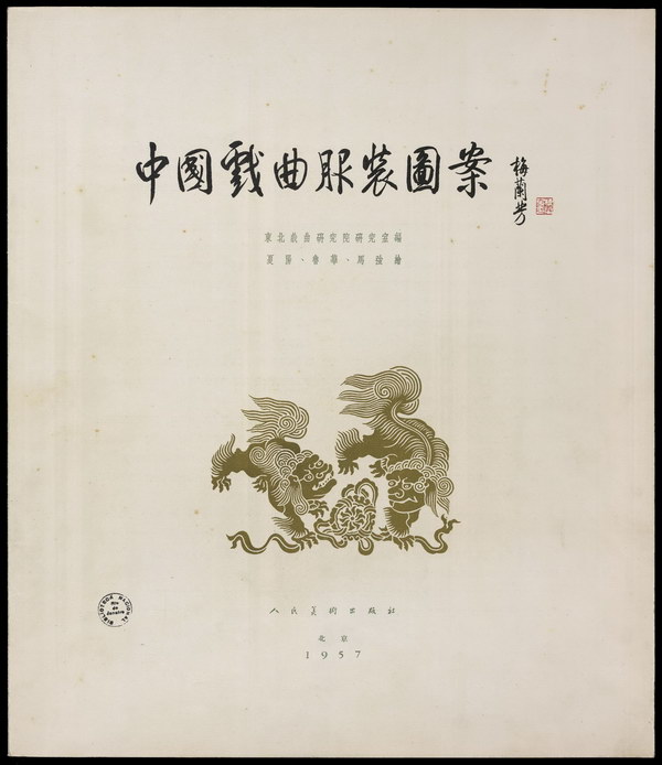 《中国戏曲服装图案》梅兰芳题写书名,绘图作者有马强、夏阳、鲁华,这些图案是从中国旧有的戏曲服装和民间刺绣实物以及个别同志的创作中选择比较好的,加以组织整理编绘而成的。书中收各式图案73幅60页。